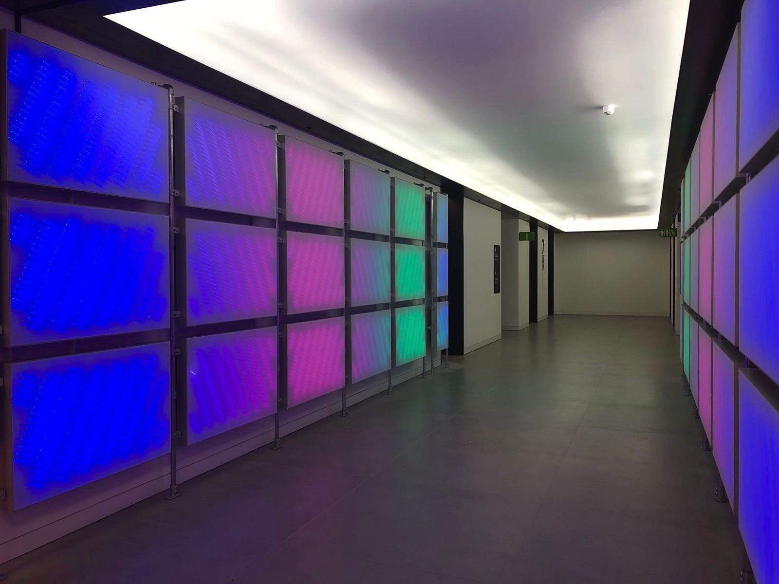 Now it is aAmazon HQ in London office turn to experience a new meaning of lighting using LED control from ProtoPixel.developed a permanent light installation to transform a boring white corridor of Cross Channel Marketing team floor to a futuristic space ship passage using a smart fabric wall from and ProtoPixel technology.