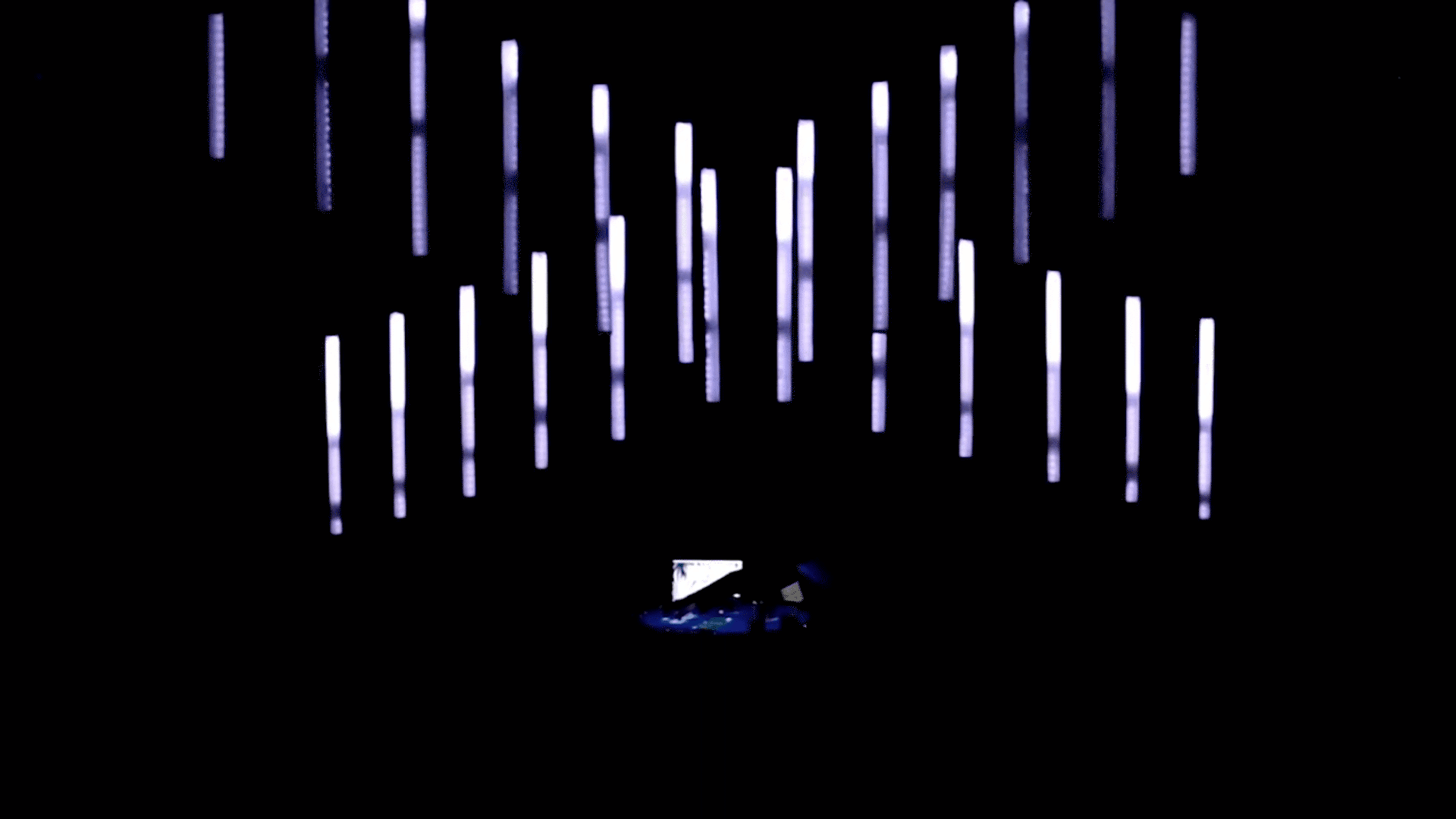 During this show Carles López played the reactable with a set of floating LED fixtures designed by ProtoPixel that interacted to the music with different presets. This floating structure gave to the event a distinctivelighting touch.
