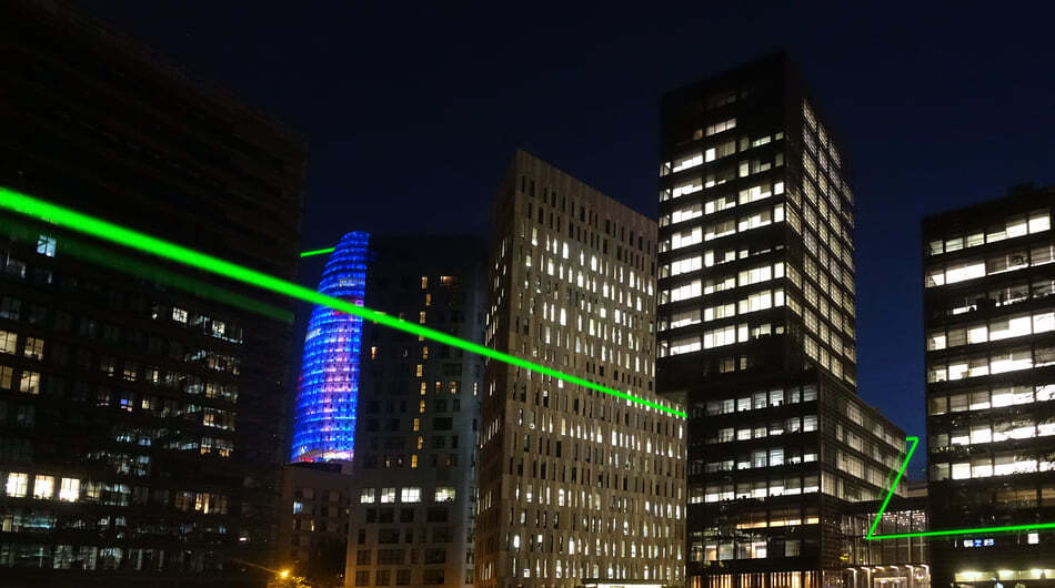 In the context of the 2020, our Professional Services team collaborated with to adapt the lighting skin of the Glòries Tower for their installation .Làser 2 is a beam of bright light that is projected along the streets of Poblenou quarter, mapping out a route that connects the different spaces occupied by the Llum BCN installations.