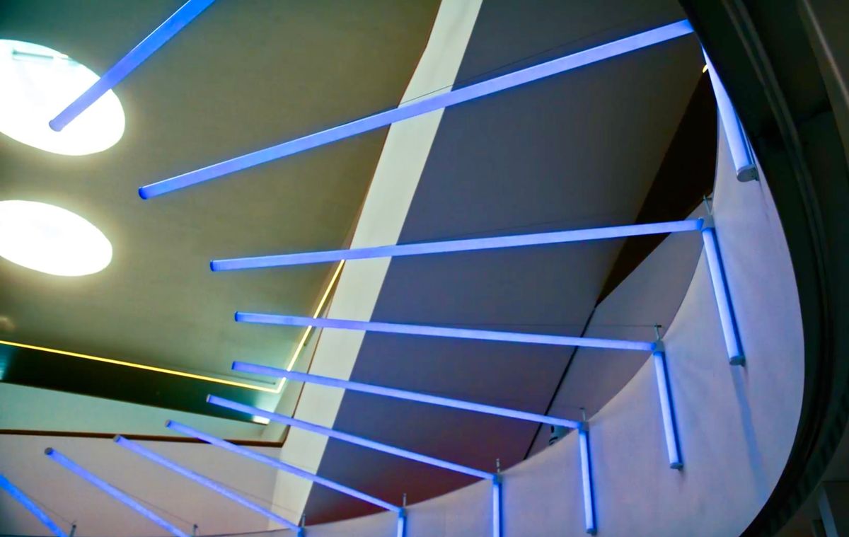 The scope of the Atrium installation comprises 3 types of luminaires (short vertical, long vertical, and L-shape luminaires) controlled by a Gate SPI Wired Gate SPI Wired Long-Range and Brain Experience (the installation brain). The 3 types of luminaires comprise digital LED profiles that allow the creation of lighting effects.