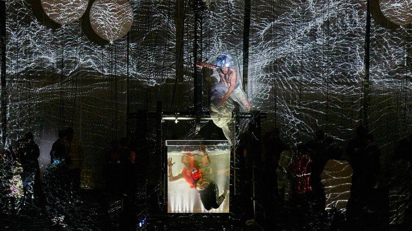 The director, Carlus Padrissa, opted for a set composed by a nine-meter crane, 36 huge helium balloons, a 1000-litre aquarium on the stage, and lighting costumes powered by ProtoPixel technology.The costumes were controlled remotely by the company's video artist, who was using them as a screen, giving the audience an excepcional opera-like experience.