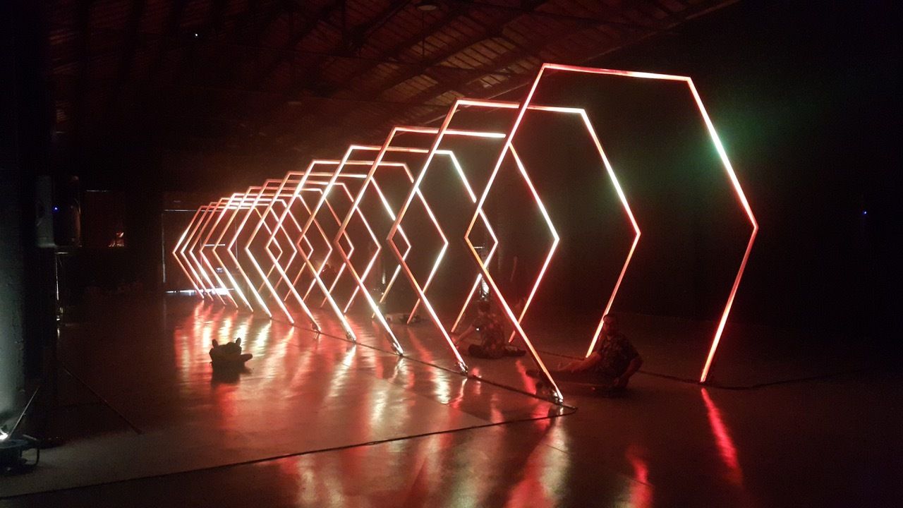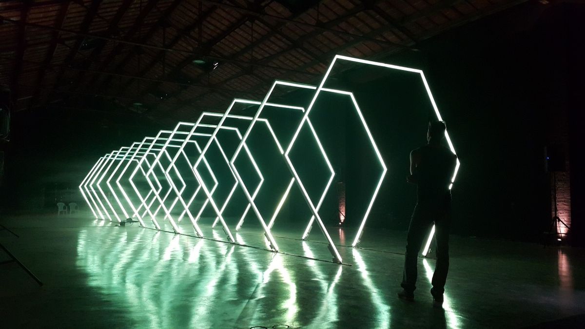 HEXXØNE is an interactive-modular art installation featuring 7200 LEDs forming a mapping tunnel where people can pass through.Music and LEDs are synchronized creating an immersive mapping experience for the audience.