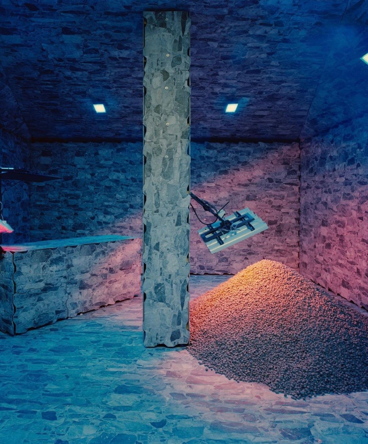Inspired in Barcelona: SPA is a facility designed to provide complete immersion in various therapeutic areas. In this context, it represents an architectural space where Santomà engages with light as a tangible material. He explores various visual and thermal frequencies, intertwining them with architectural and human bodies, as well as diverse surfaces. The objective is to delve into the actions of light and its transformative power, molding novel shapes and altering their structure in an ever-fluid and evolving interaction.