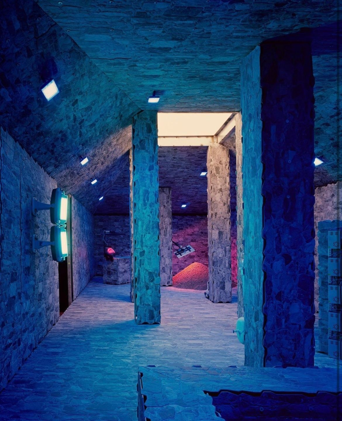 We had the opportunity of contributing to the space with our signature skylight, created with a series of warm-white and cold-white LED strips, and one , allowed for control over 1716 points of light, covering a total area of 3,42 m2. Moreover, our participation extends to the luminous signage, which frames the entrance to the installation and imbues it with dynamic digital light.