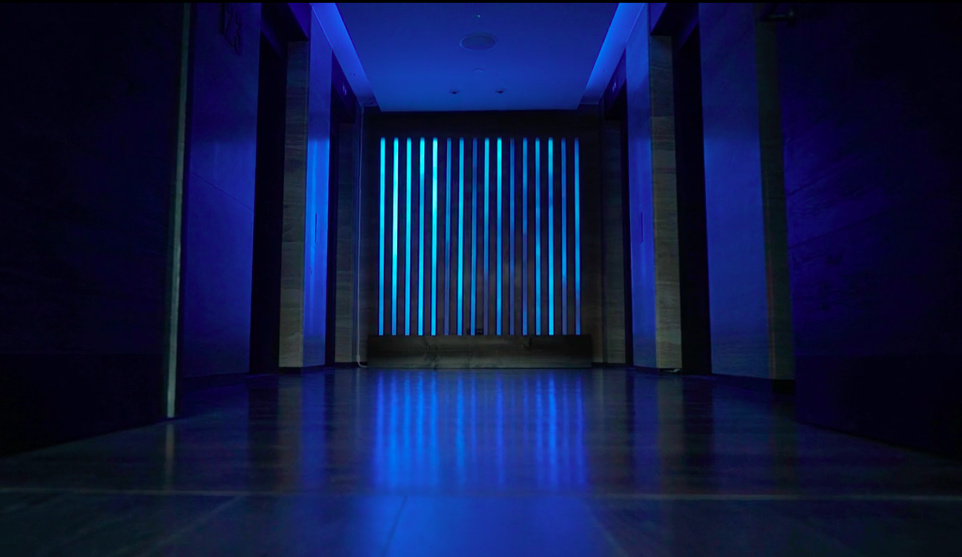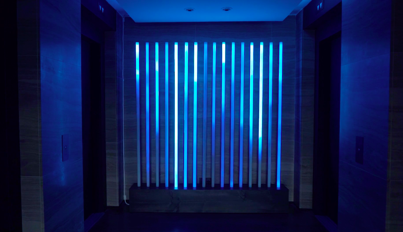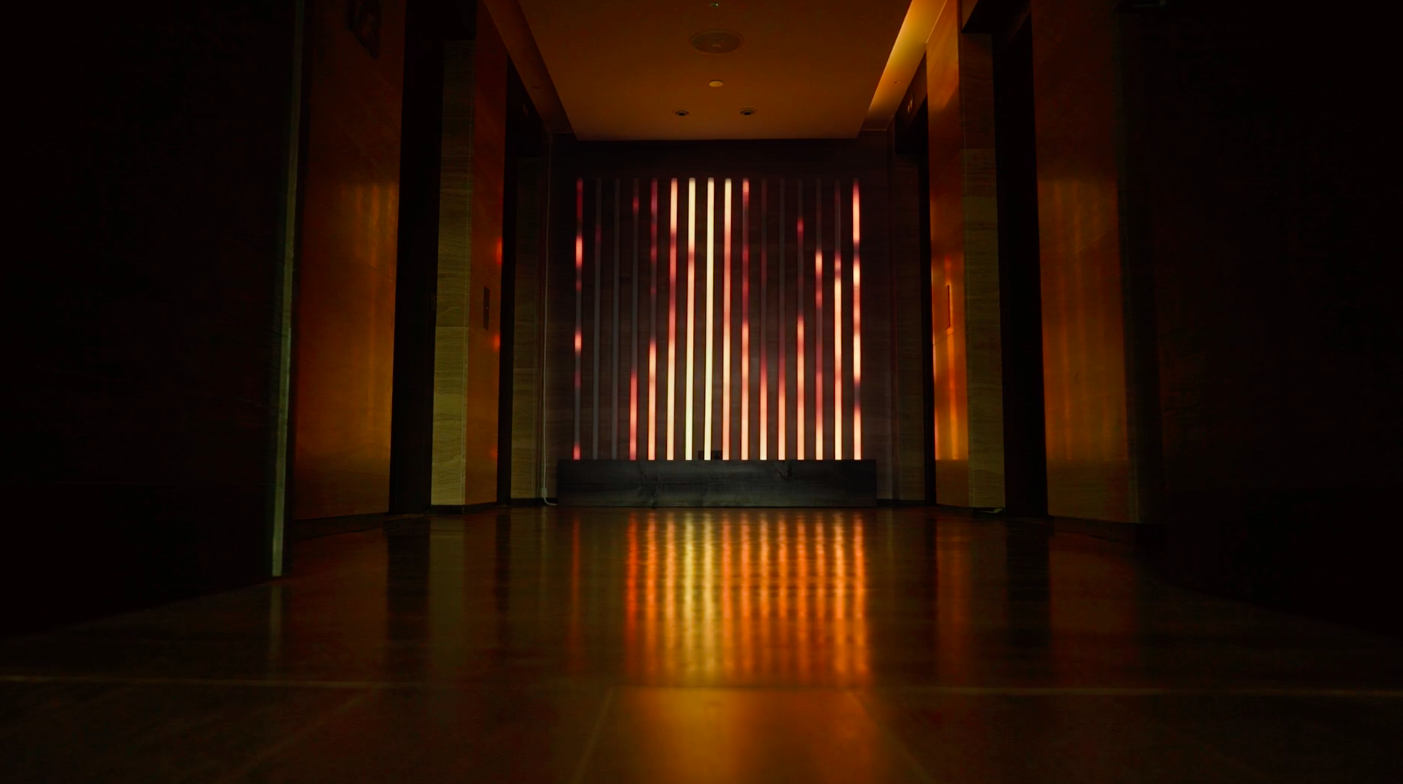 This lighting installation made of 16 Dynamic Lighting tubes was exclusively created for the by digital art studio . They developed the project from the initial idea and concept to the final design and execution.This changing lighting patterns made the space vivid and dynamic. The reflections on the marble walls were embracing the hallway with the very same ambience.