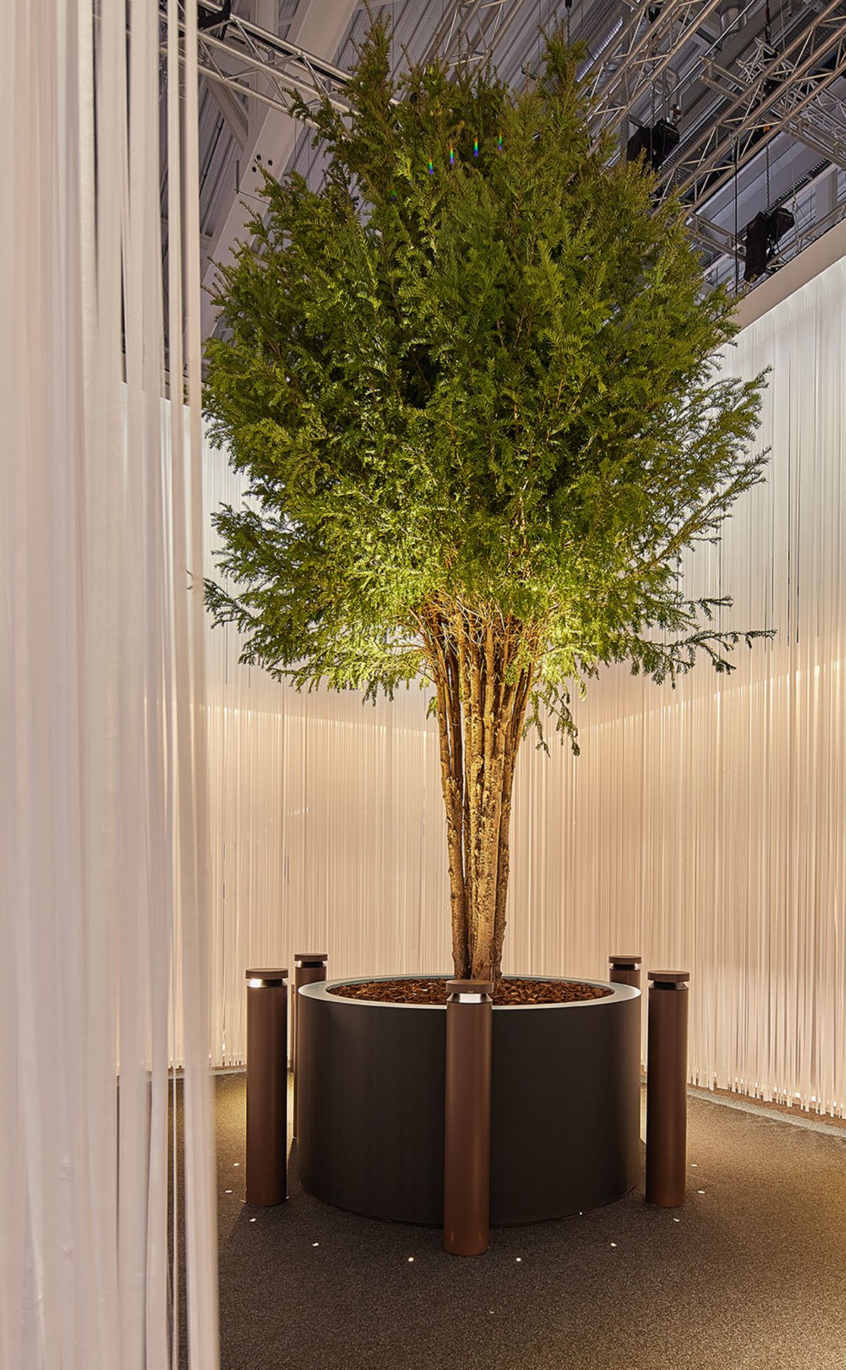 At the entrance, the "Lumeneye" installation captivated attendees with its kinetic precision. This point-to-point motorized lighting display created an ever-evolving visual dialogue, setting the tone for a journey through cutting-edge lighting solutions.