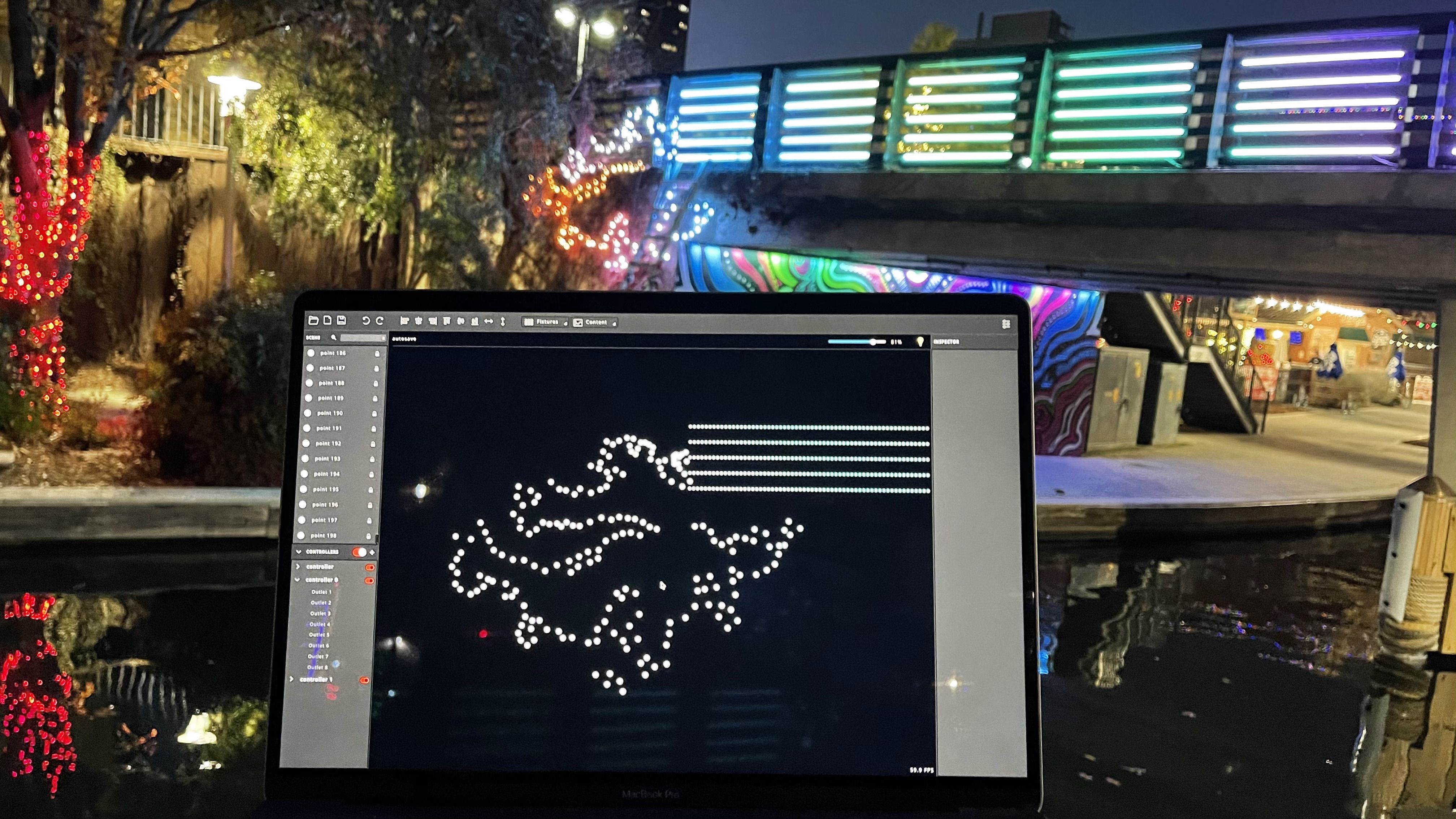 Artist Stephen Tyler (Mostly Harmless Media) and urban designer Nathan Hendrix (True Facade), who were in charge of the conceptualization and production of the installation, relied on all the products that form our all-in-one lighting platform to turn their idea into a physical creation, from top to bottom. They used our software to easily design the concept, our controllers and Brain Experience to deploy all the information and our Manager App to control the installation.