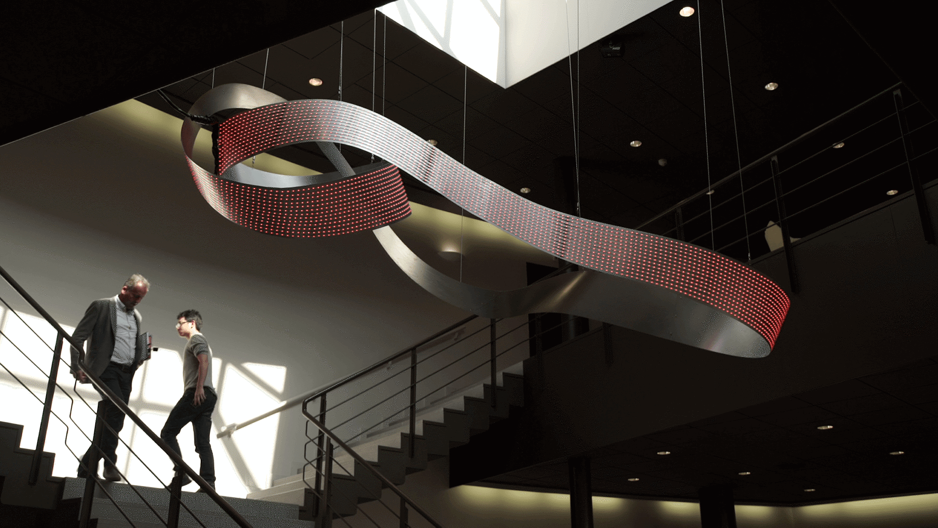 The Catalan painter and sculptor relied on ProtoPixel to create a floating lighting structure for the headquarters in Manresa (Spain).The sculpture runs on a ProtoPixel Brain Experience and the infrastructure owner can display different visual contents using the ProtoPixel mobile app (e.g. text and video).
