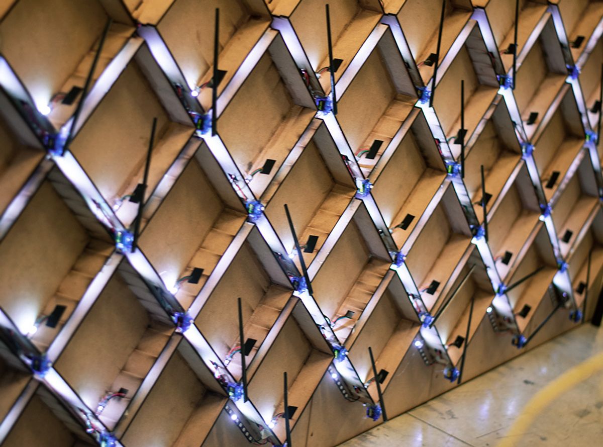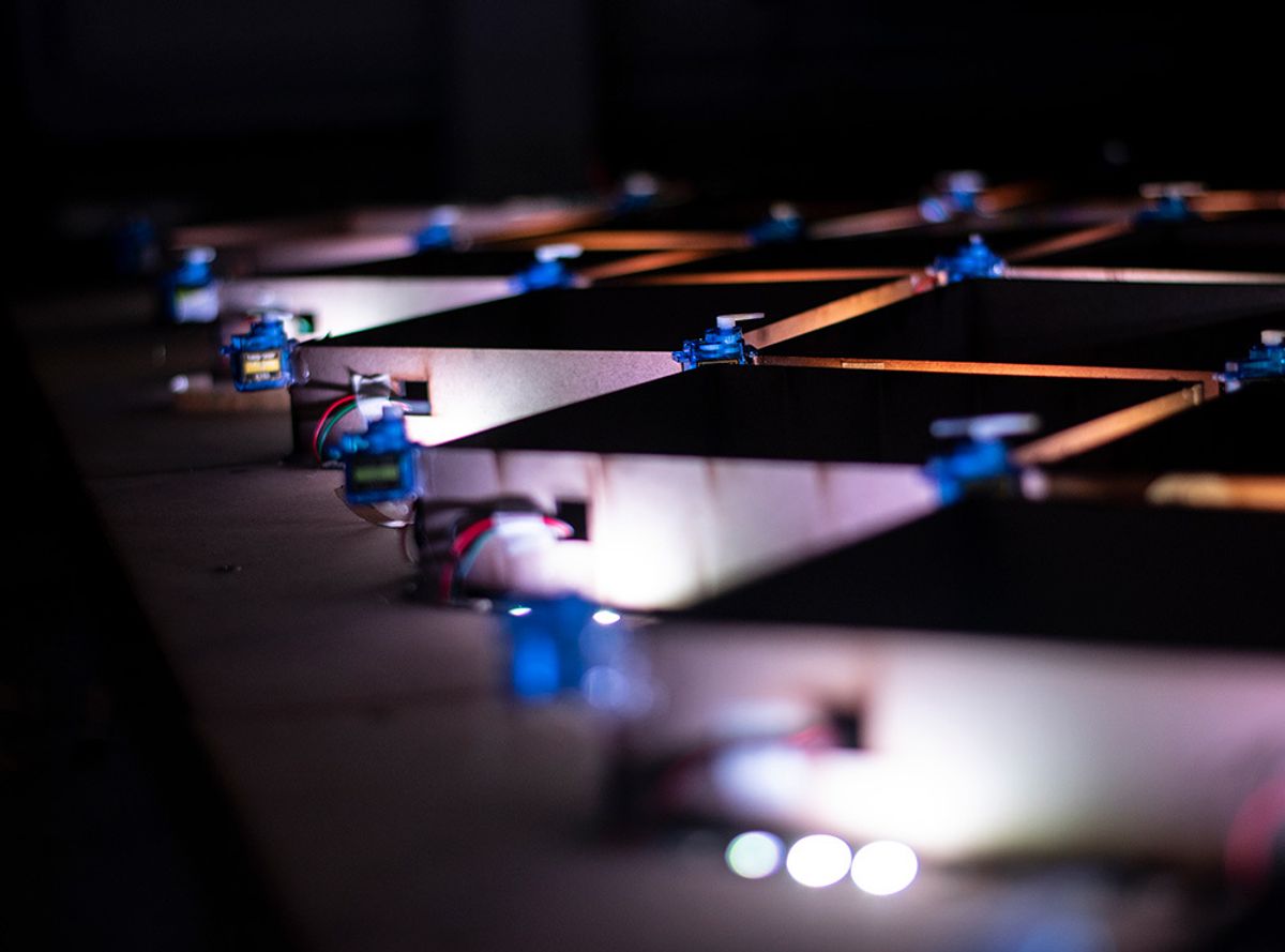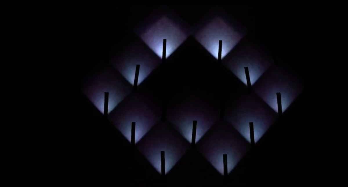 Metron Space is composed of 53 pendulums connected with LED strips, reacting on music beats and forming hypnotising dancing patterns. The piece is exploring and expanding boundaries, energy and perception of the space and sound.It is a perfect example of how ProtoPixel helps to embody artist visions and give more space to innovative ideas.