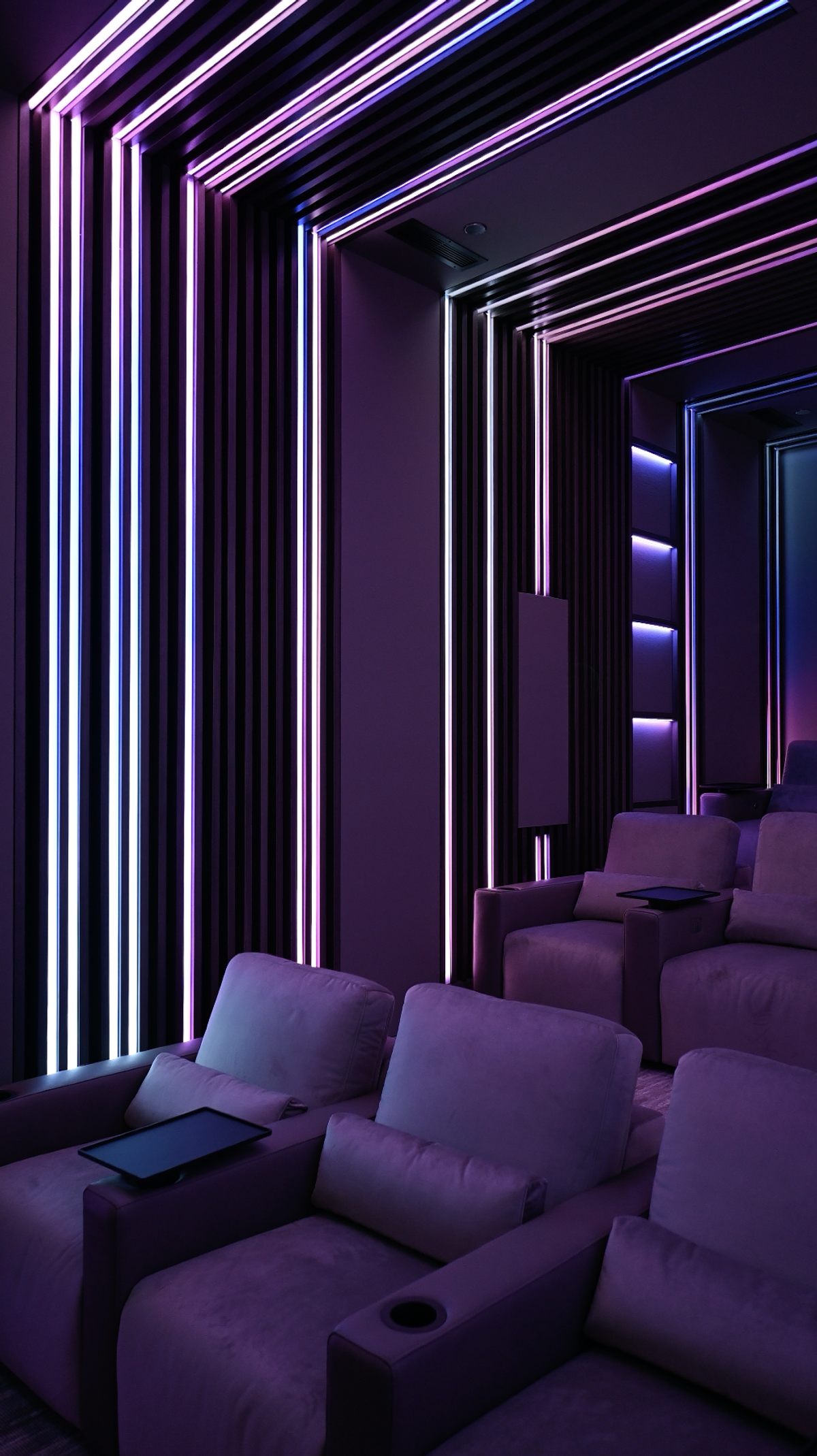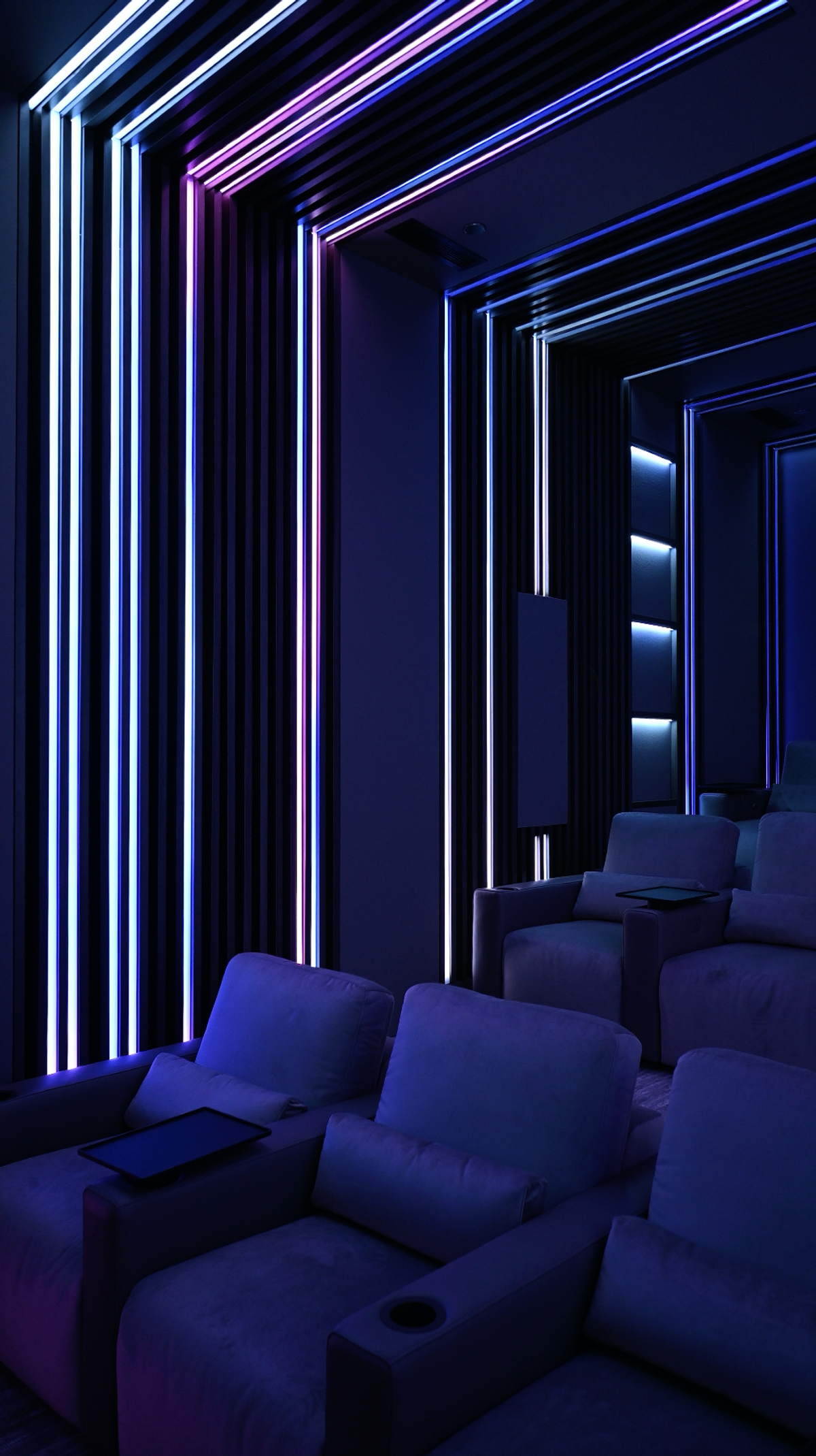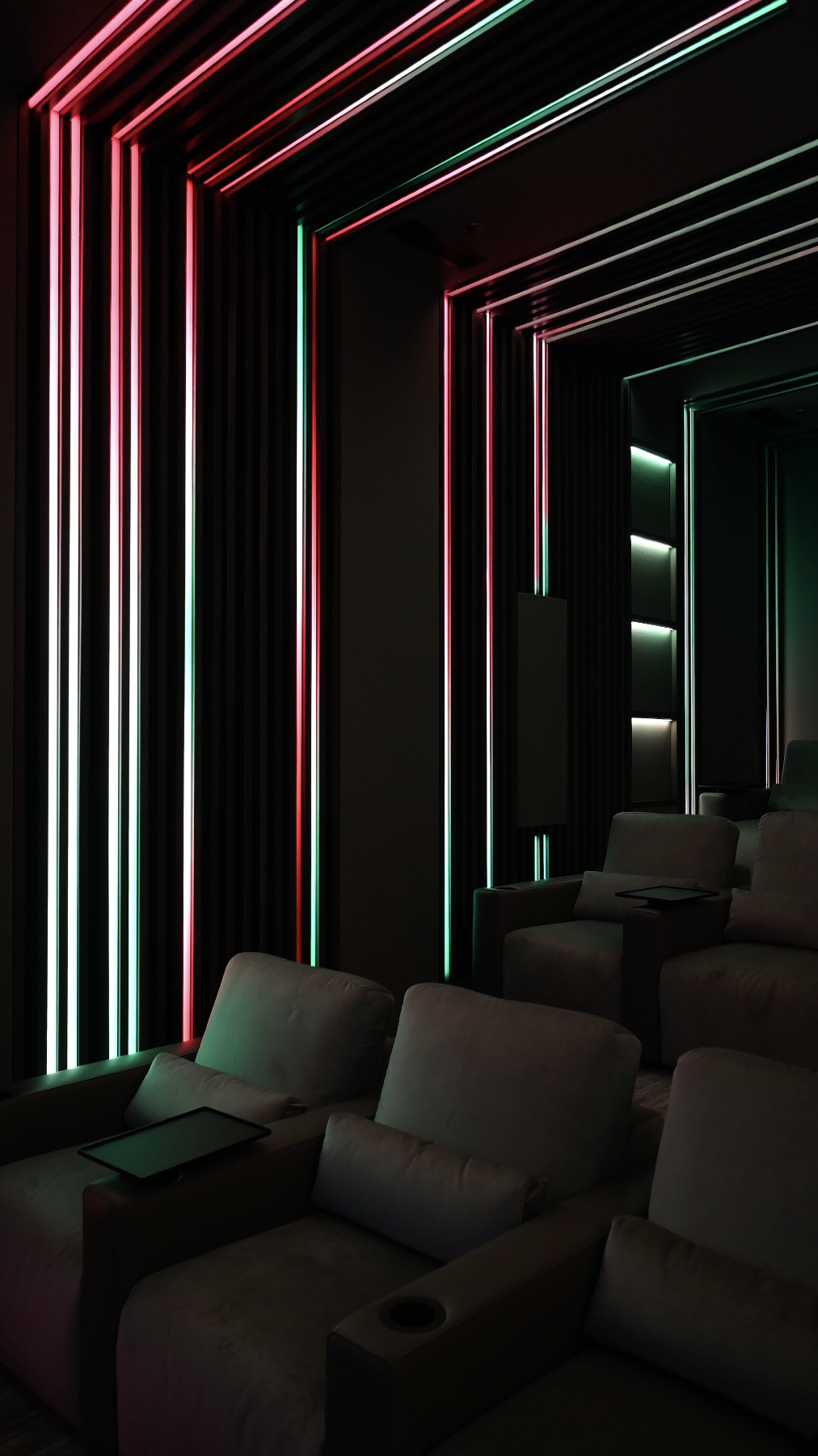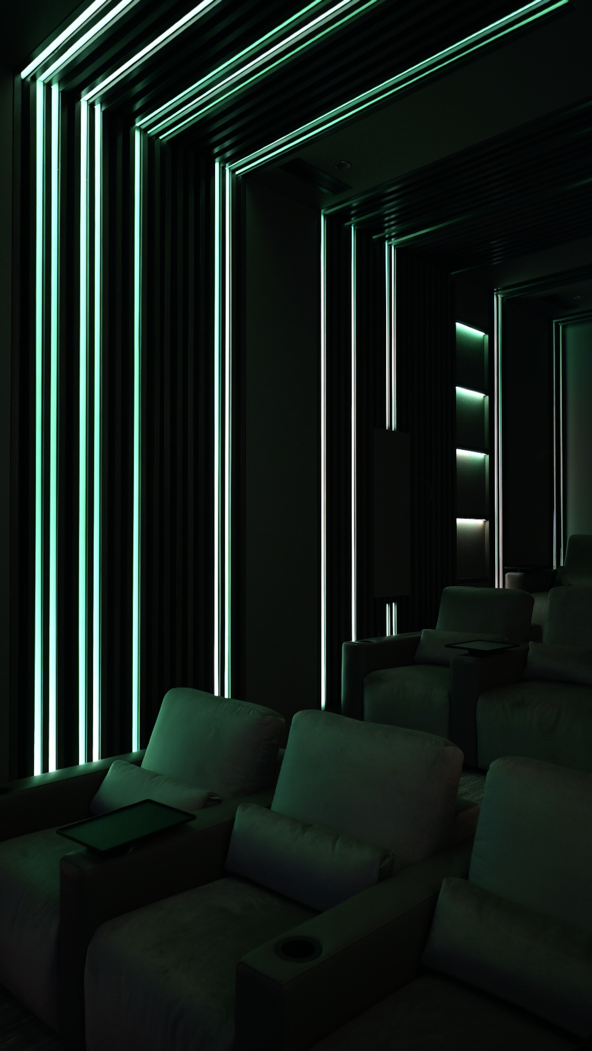 For their first project made with our technology, Apex and Light Walls teamed up with –a company that creates industry-leading systems in home automation and entertainment–to deliver a cinema installation for a client.