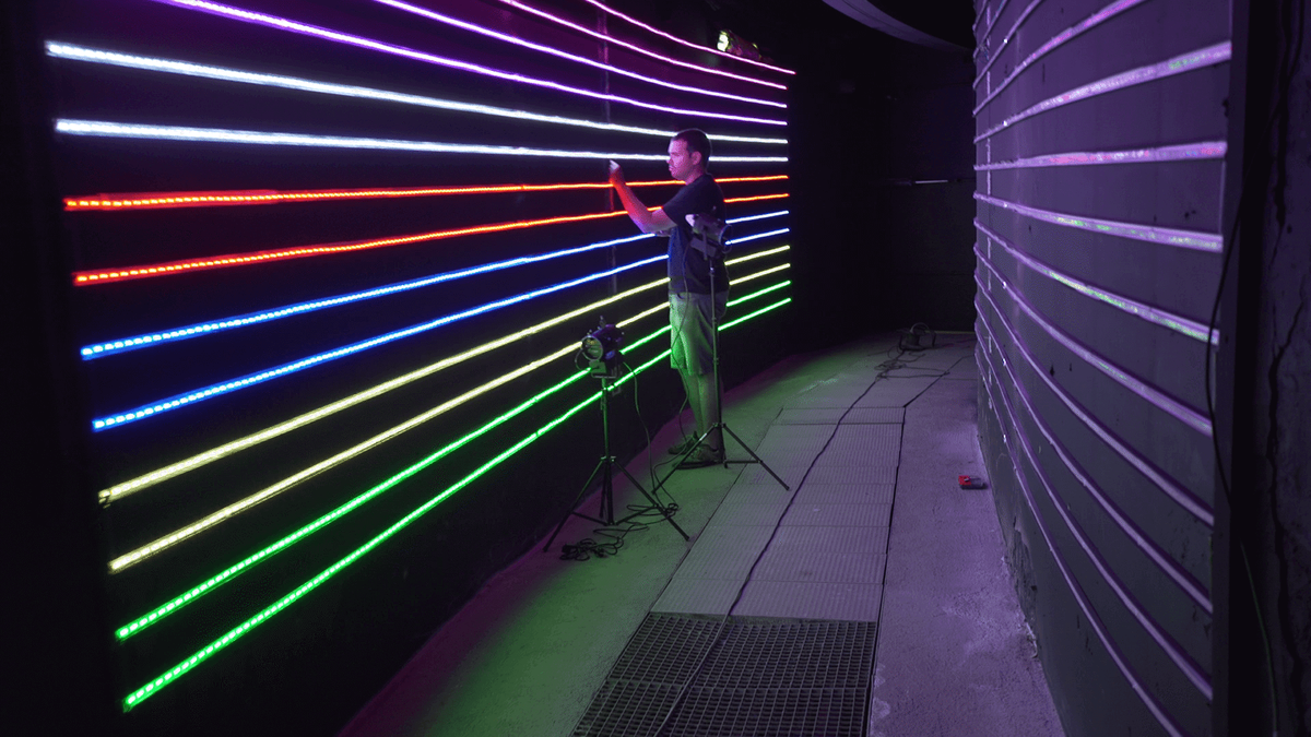 The ProtoPixel team created and installed customs LED fixtures in three indoor tunnels, used more than 21500 RGB LEDs, 7 ProtoPixel Pro Controllers and 3 ProtoPixel Brain Experiences controlling the whole infrastructure.