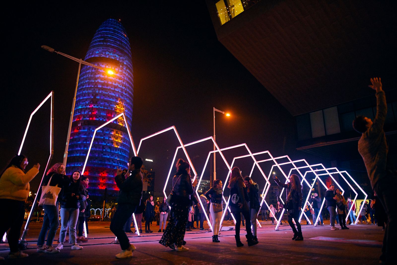 A truly interactive light installation formed by 18 giant hearts and 10.000 LEDs.
