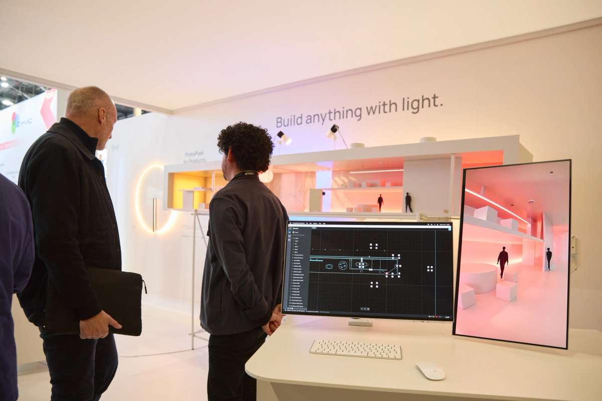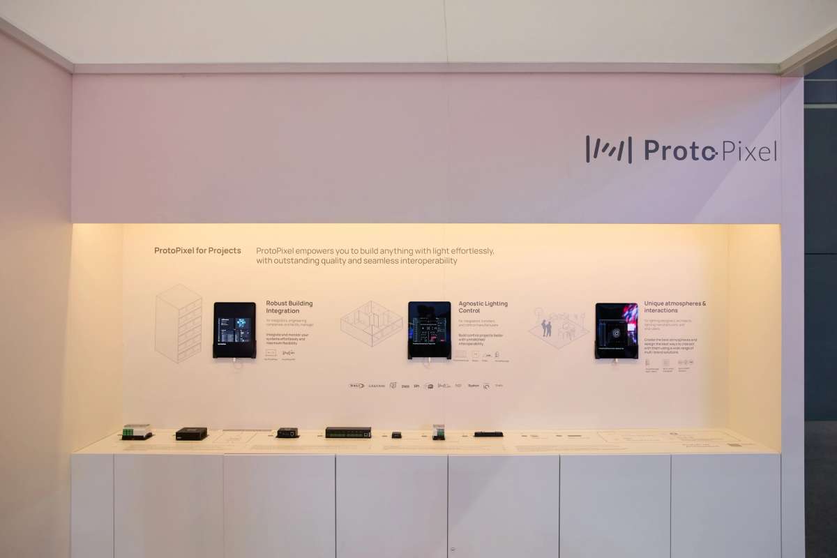 Nuestro stand fue diseñado por & y fue completamente controlado con la Plataforma ProtoPixel. El stand contaba con 3 espacios principales:- ProtoPixel para Proyectos, donde demostramos nuestro valor en los distintos niveles y escalas de un proyecto de iluminación