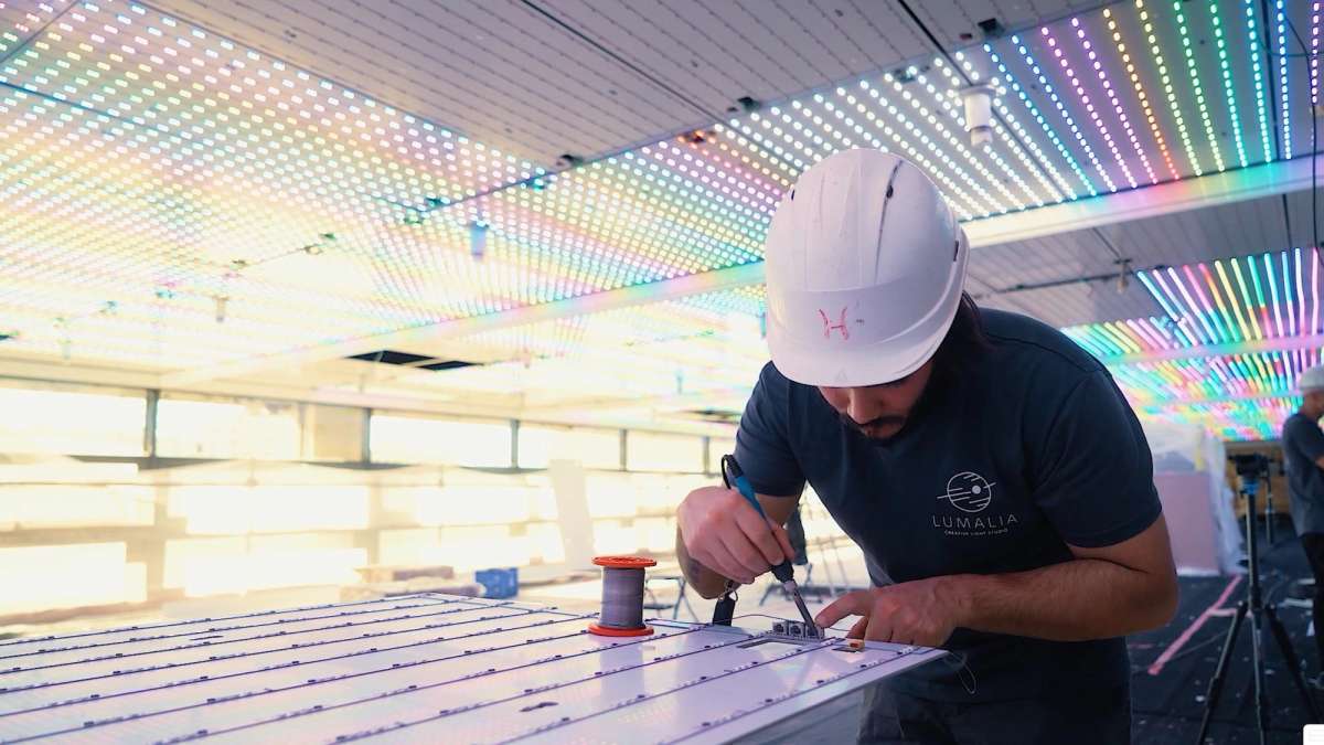 Esta instalación, compuesta por más de 200,000 píxeles meticulosamente mapeados a lo largo del espacio, muestra contenido dinámico y programado a través de varios Controladores ProtoPixel Gate SPI Wired Long-Range, orquestados por una Brain Experience. El uso de LEDs RGBW permite una amplia gama de colores, y cada parte de la instalación, desde los paneles hasta los LEDs y la tensión del textil, ha sido diseñada a medida y fabricada para adaptarse al espacio. El techo, difuminando los límites entre la iluminación y las pantallas de baja resolución, cobra vida a través de contenido personalizado desarrollado en ProtoPixel. Inspirada en las hipnóticas y misteriosas auroras boreales, la instalación utiliza sombras para crear una experiencia inmersiva que evoca diferentes atmósferas, combinando espectáculo con refinamiento.