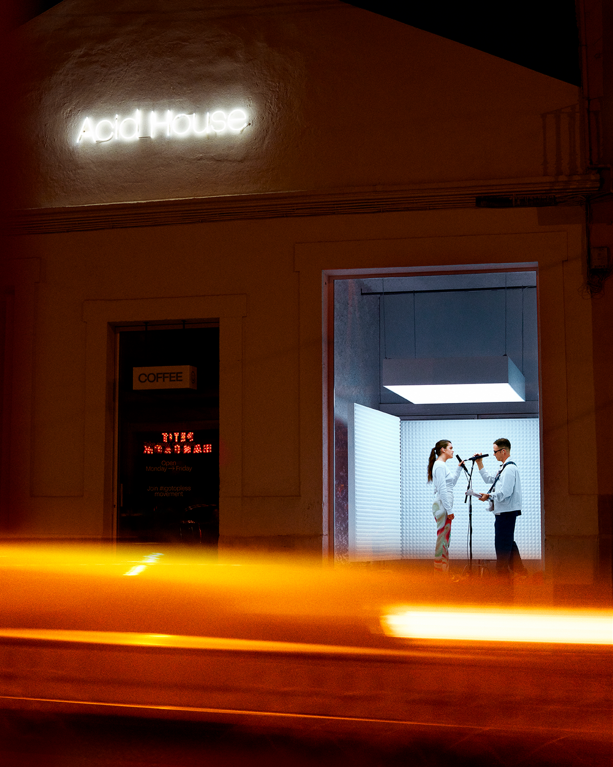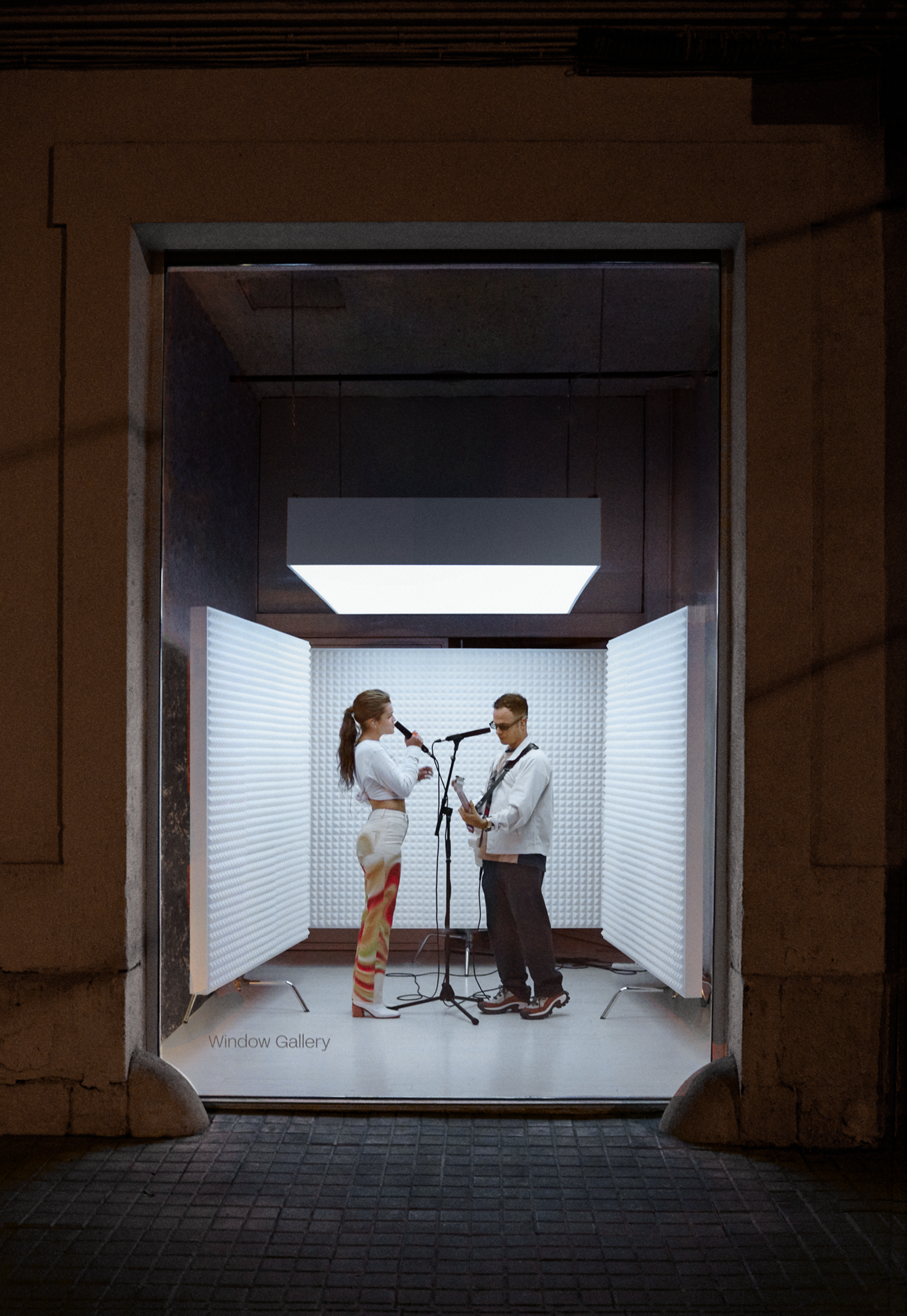 Our partner –through its sister companies and –contacted us to provide the lighting design and technology for , a format for live sessions in a street-level window like stage, halfway between the videoclip and the live show, which brings together different artists and musical genres.With this global and transmedia perspective, Gallery seeks to explore the local talent and showcase it to the world. In this sense, the first session was the premiere of Amaia and Alizzz's new track "El encuentro".