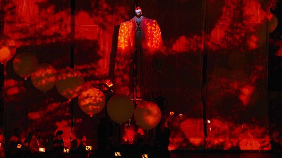 The director, Carlus Padrissa, opted for a set composed by a nine-meter crane, 36 huge helium balloons, a 1000-litre aquarium on the stage, and lighting costumes powered by ProtoPixel technology.The costumes were controlled remotely by the company's video artist, who was using them as a screen, giving the audience an excepcional opera-like experience.
