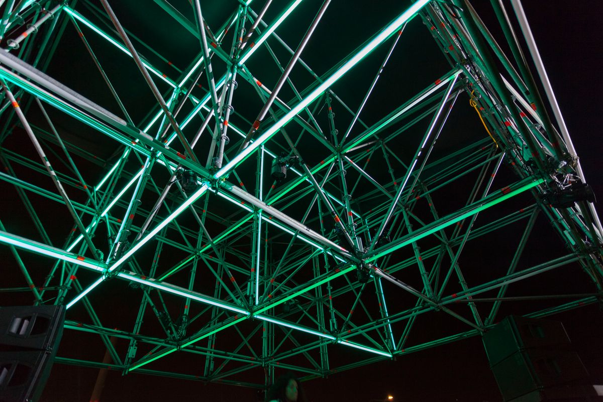 Real time audio data was used to drive the lights and make every moment unique. Simple concept, impressive result.
