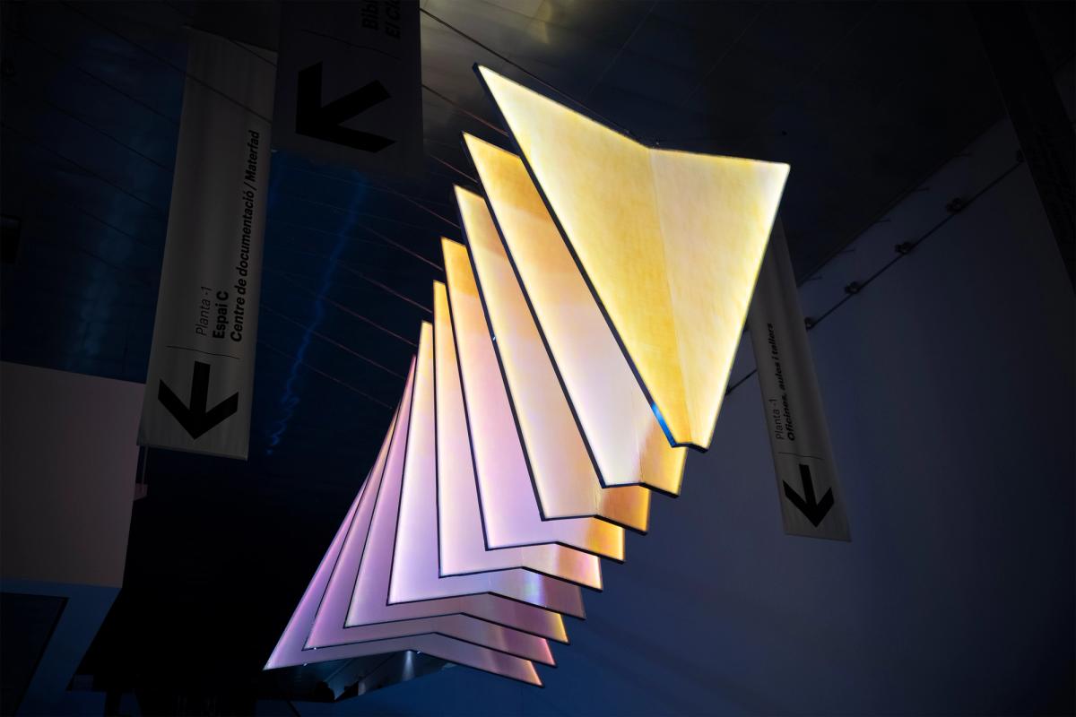 DesigNova, installed at the Disseny Hub Barcelona, is a light installation that, like the "Nova" stars, which have just been created, wants to convey a message of the future, of that which is born, new, desired, alive—a trail of colour and positive energy in continuous movement.The project was designed and sequenced with our lighting design software,, and controlled through a , the centrepiece of the installation.