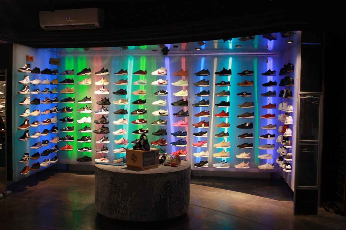 A backlight LED row combined with a diffused surface is connected to ProtoPixel hardware and software, providing everlasting generative visuals that respond to the shop musical ambiance. Delightful colors also fill the kids and sneaker sections, providing a unique customer experience.