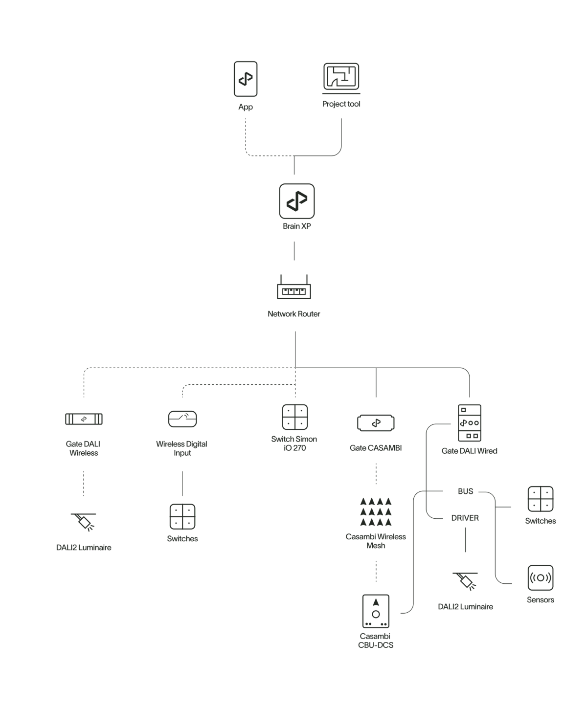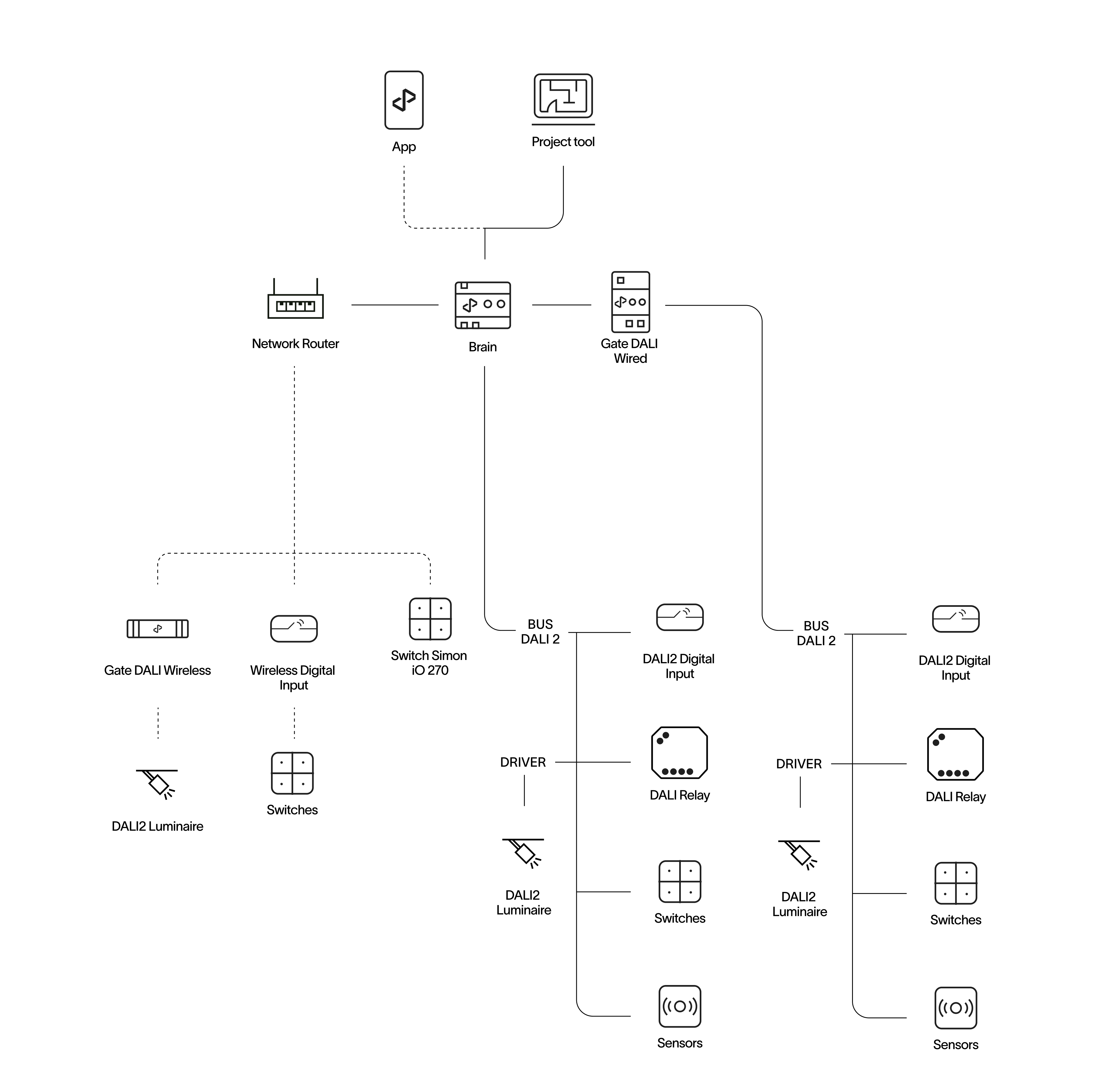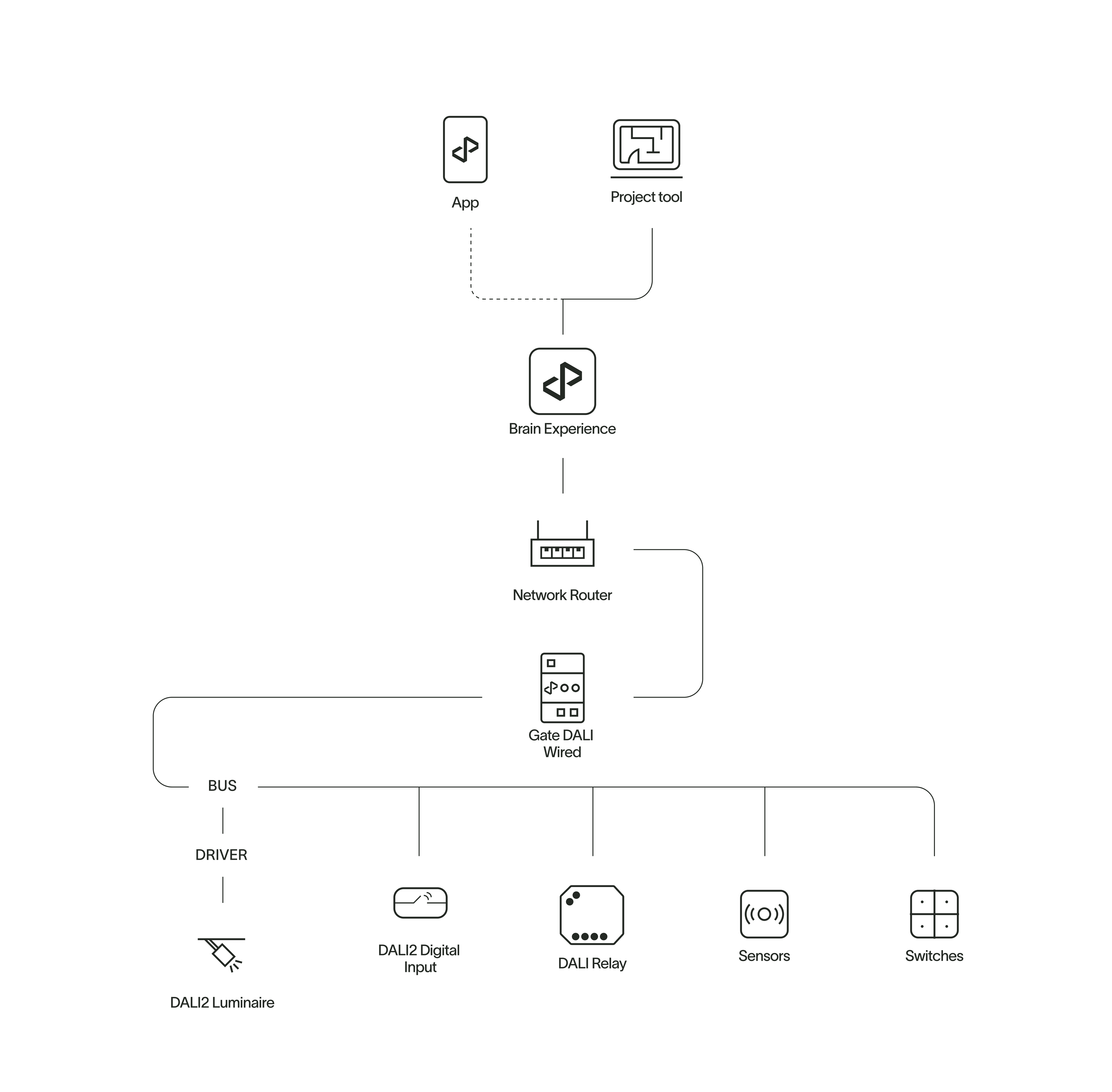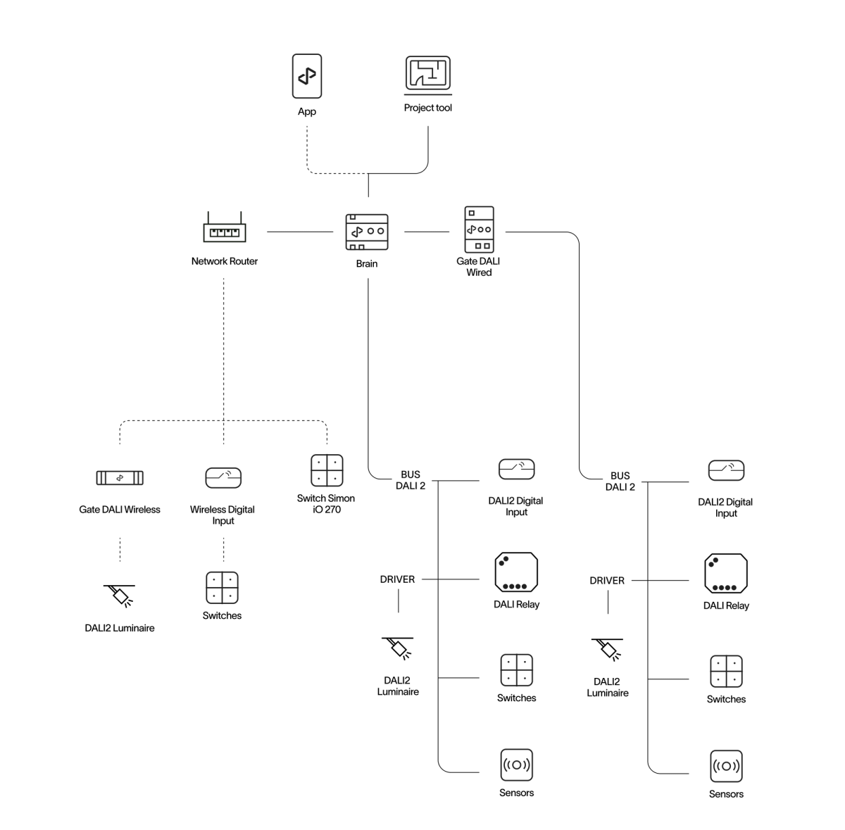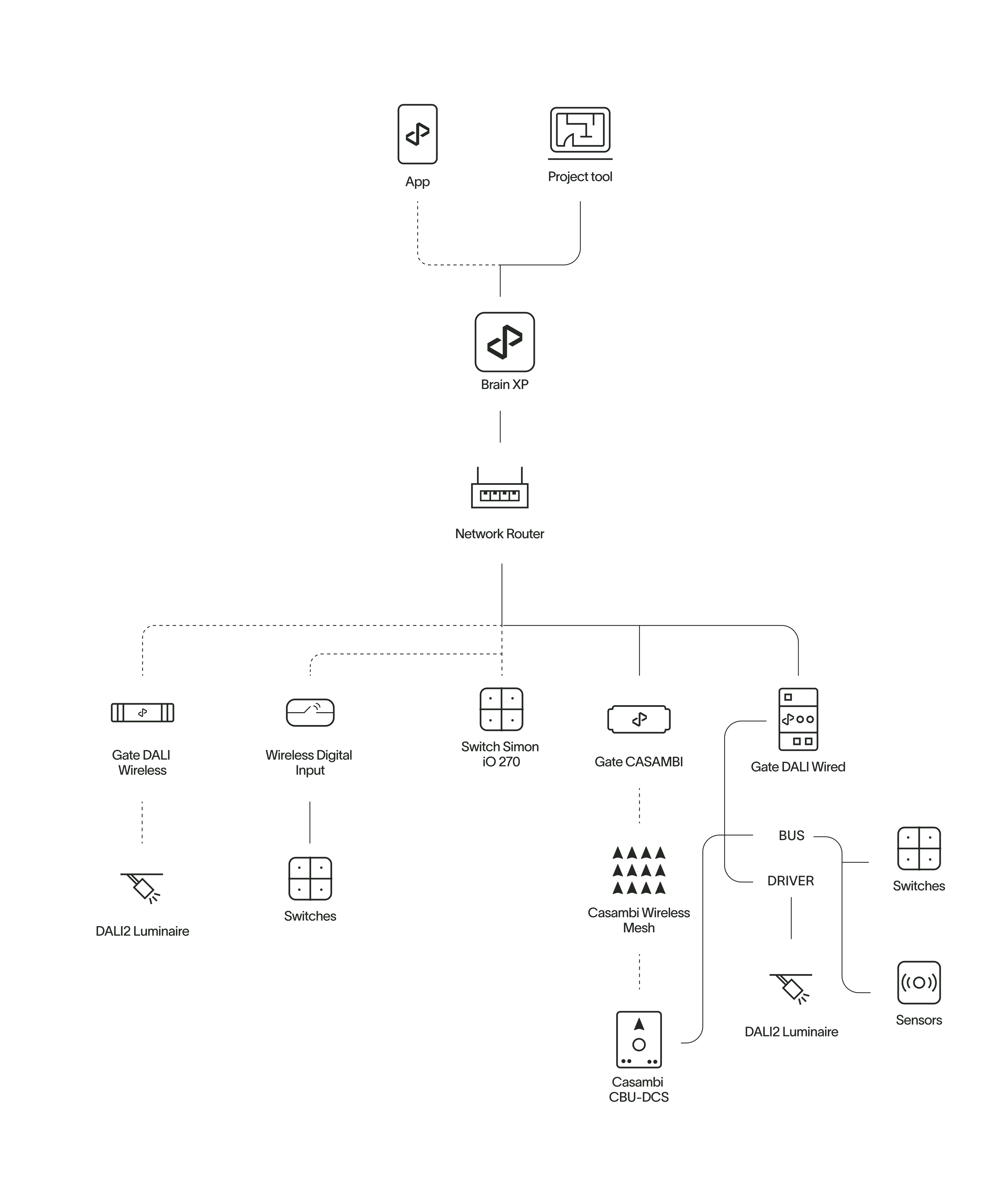 The residential lighting solution package, tailored for spaces like living rooms, lounges, and bedrooms, offers the full advantages of state-of-the-art digital lighting with minimal installation effort. This user- friendly system features wireless installation and control, enabling easy management of lighting types, dimming, color, and dynamic scenes to create comfortable, human-centric environments conducive to well-being.