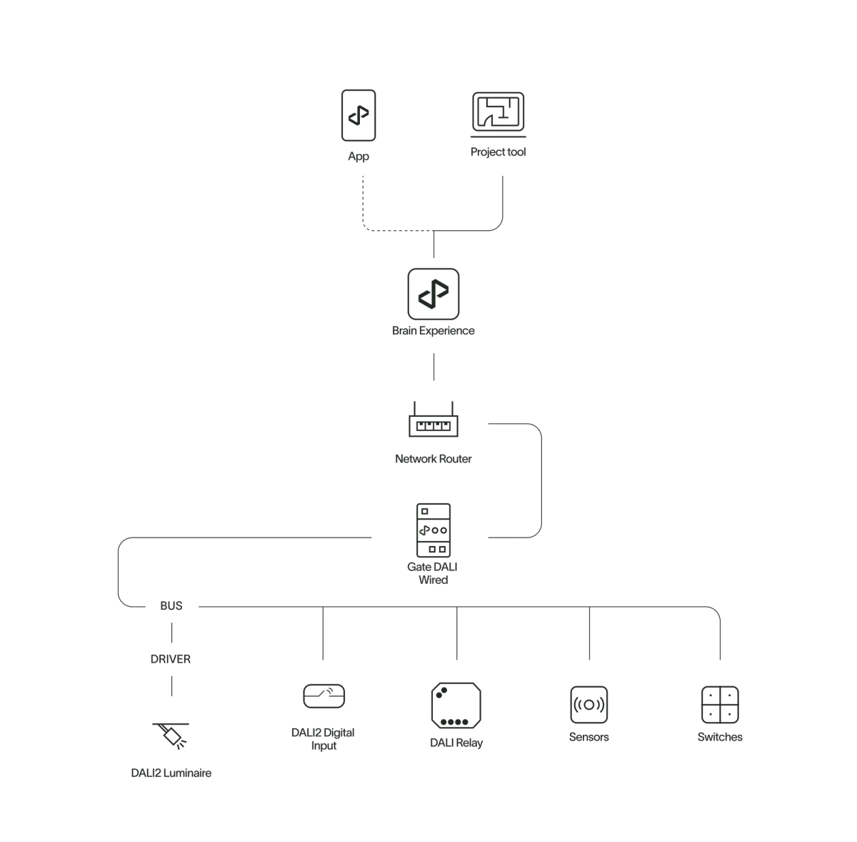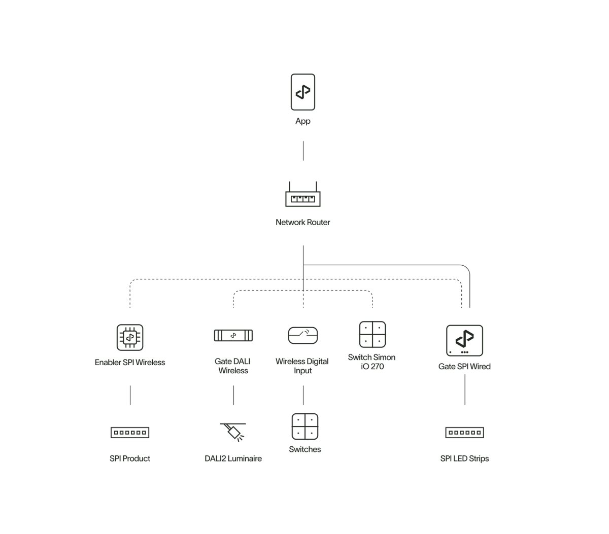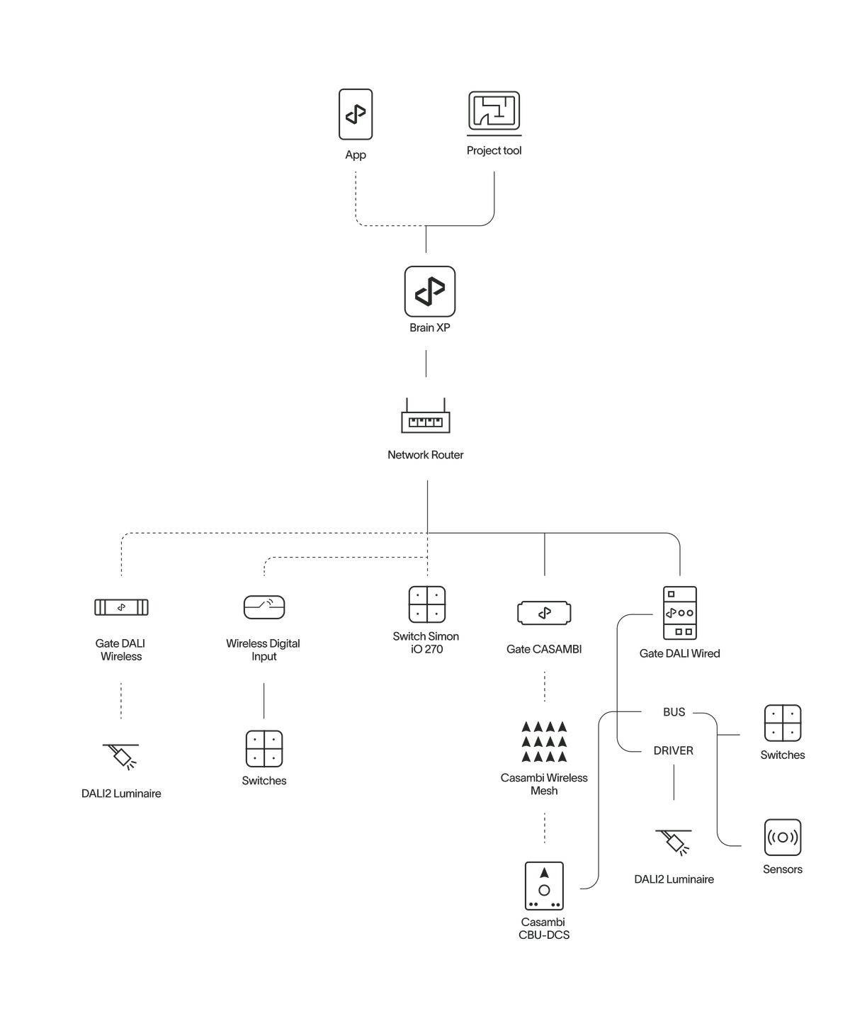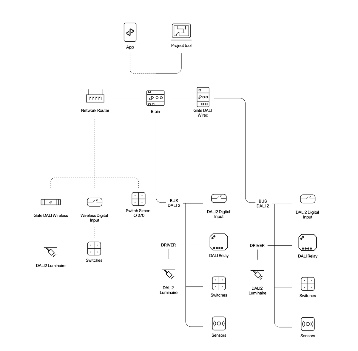 The residential lighting solution package, tailored for spaces like living rooms, lounges, and bedrooms, offers the full advantages of state-of-the-art digital lighting with minimal installation effort. This user- friendly system features wireless installation and control, enabling easy management of lighting types, dimming, color, and dynamic scenes to create comfortable, human-centric environments conducive to well-being.