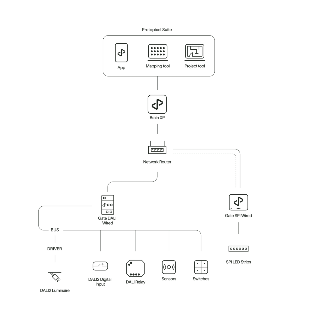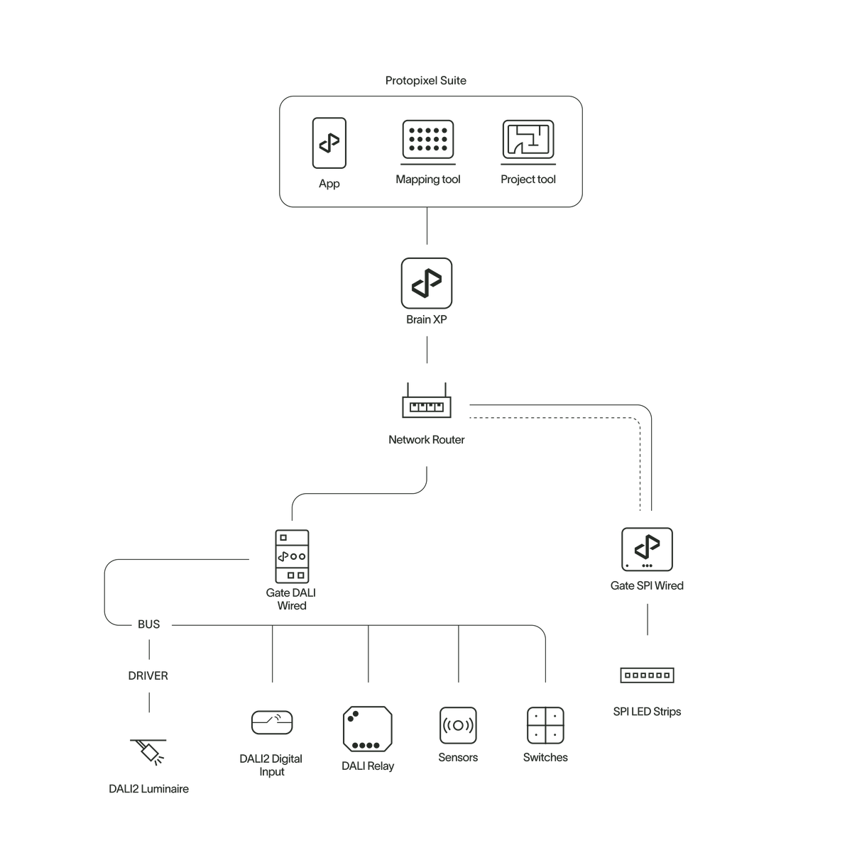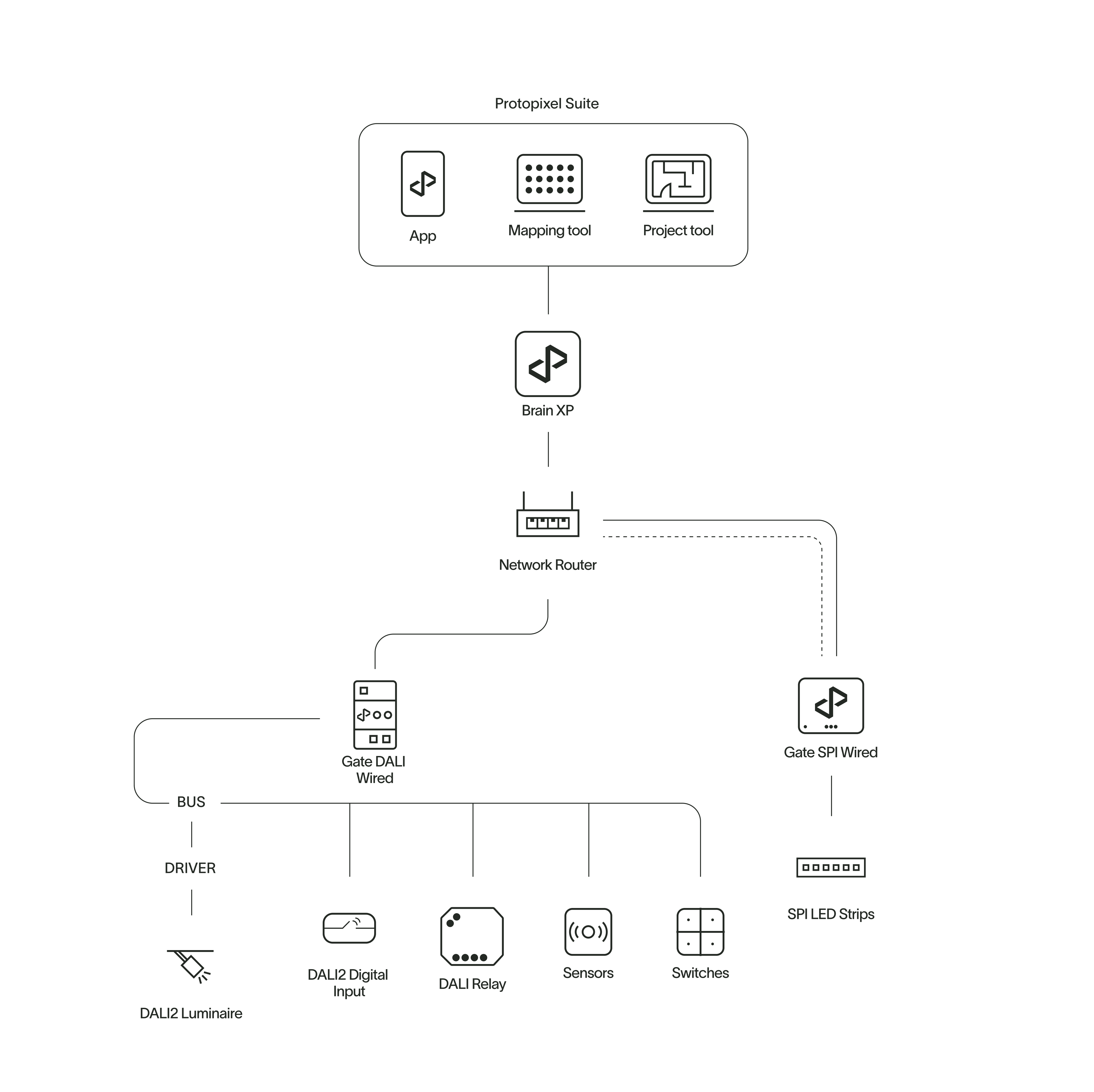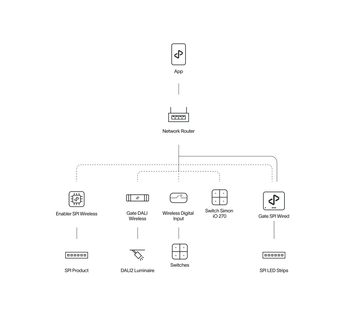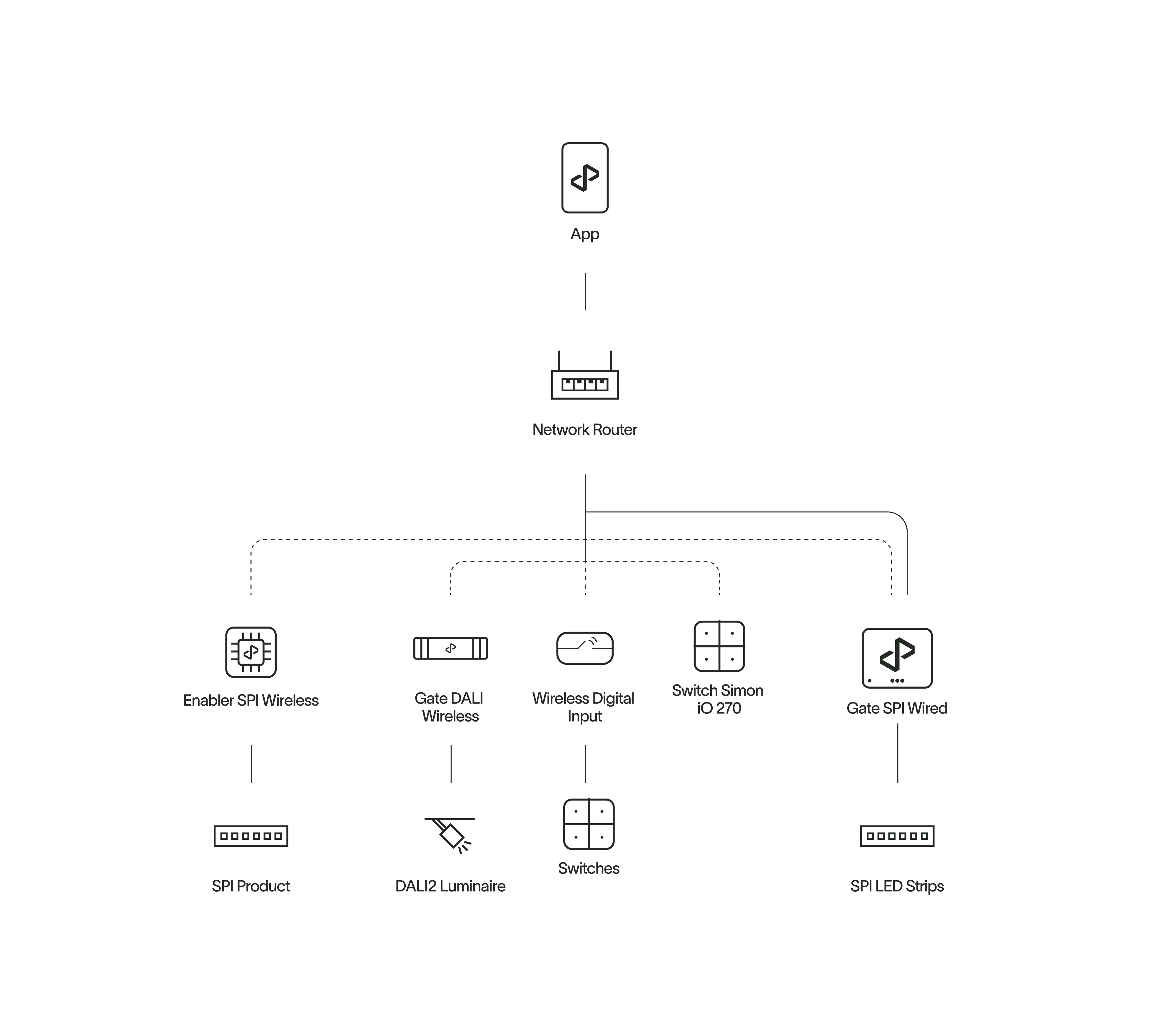The residential lighting solution package, tailored for spaces like living rooms, lounges, and bedrooms, offers the full advantages of state-of-the-art digital lighting with minimal installation effort. This user- friendly system features wireless installation and control, enabling easy management of lighting types, dimming, color, and dynamic scenes to create comfortable, human-centric environments conducive to well-being.