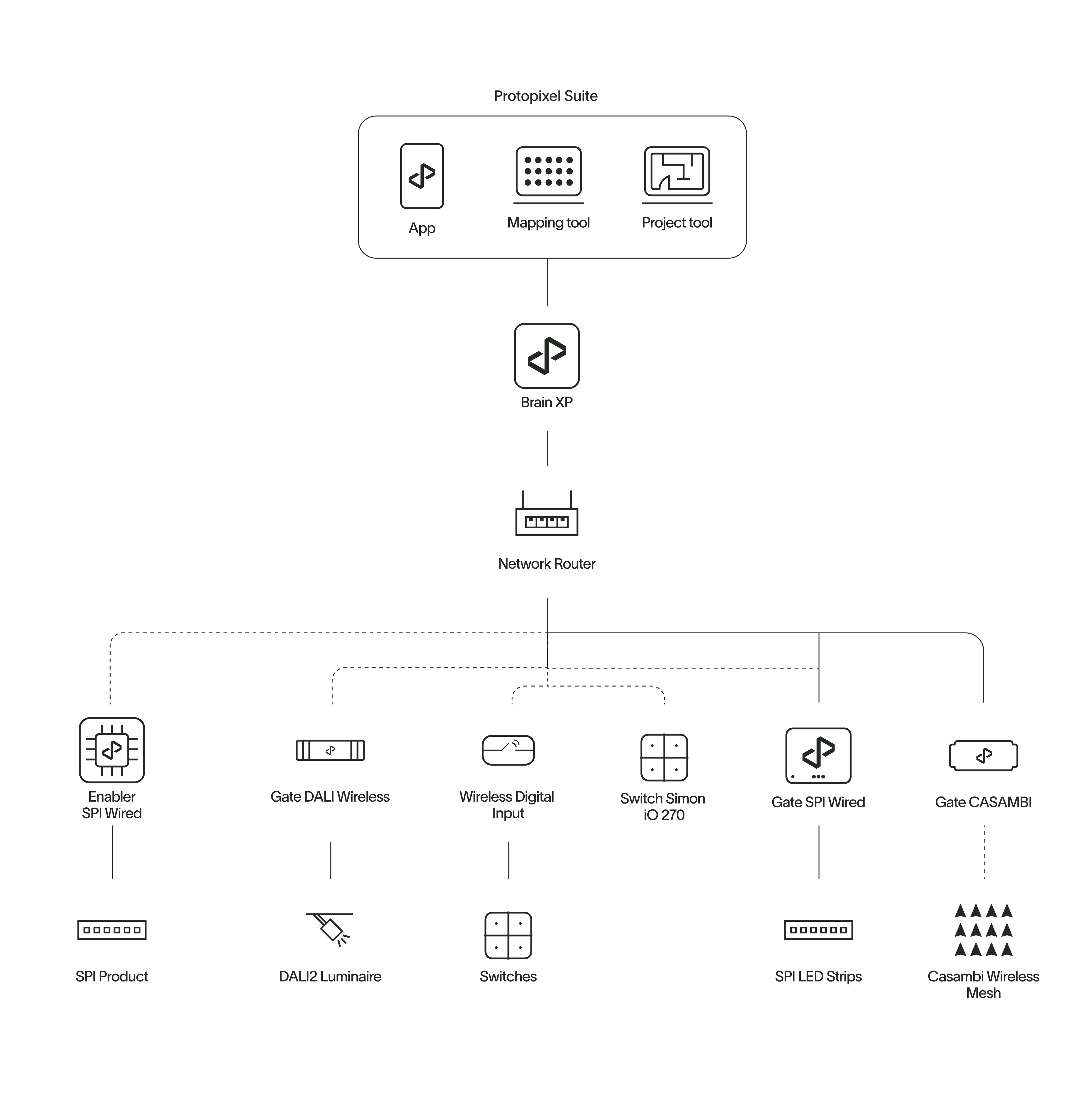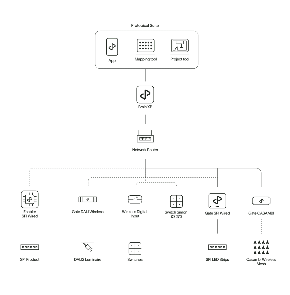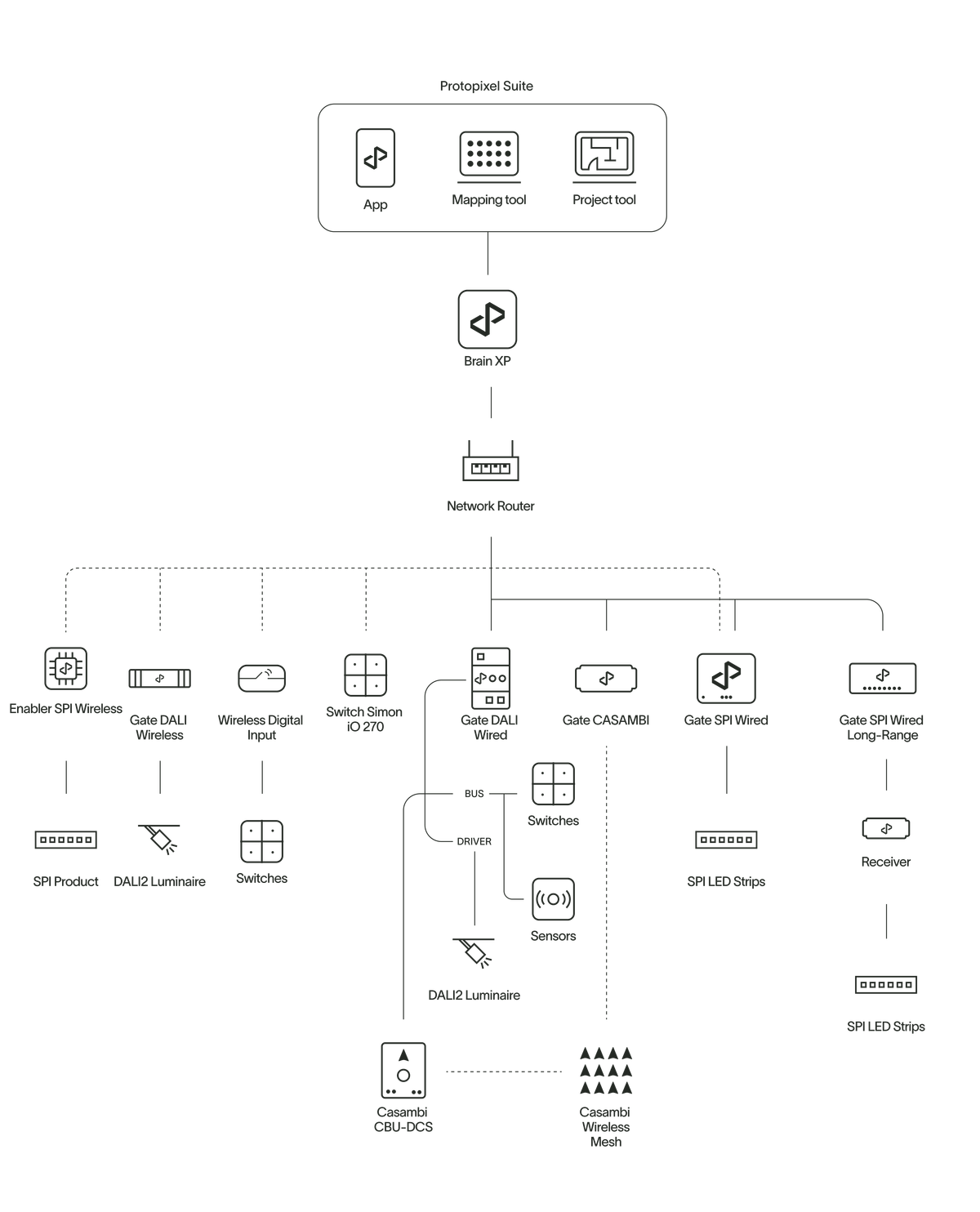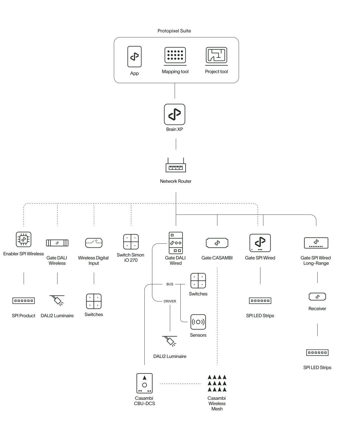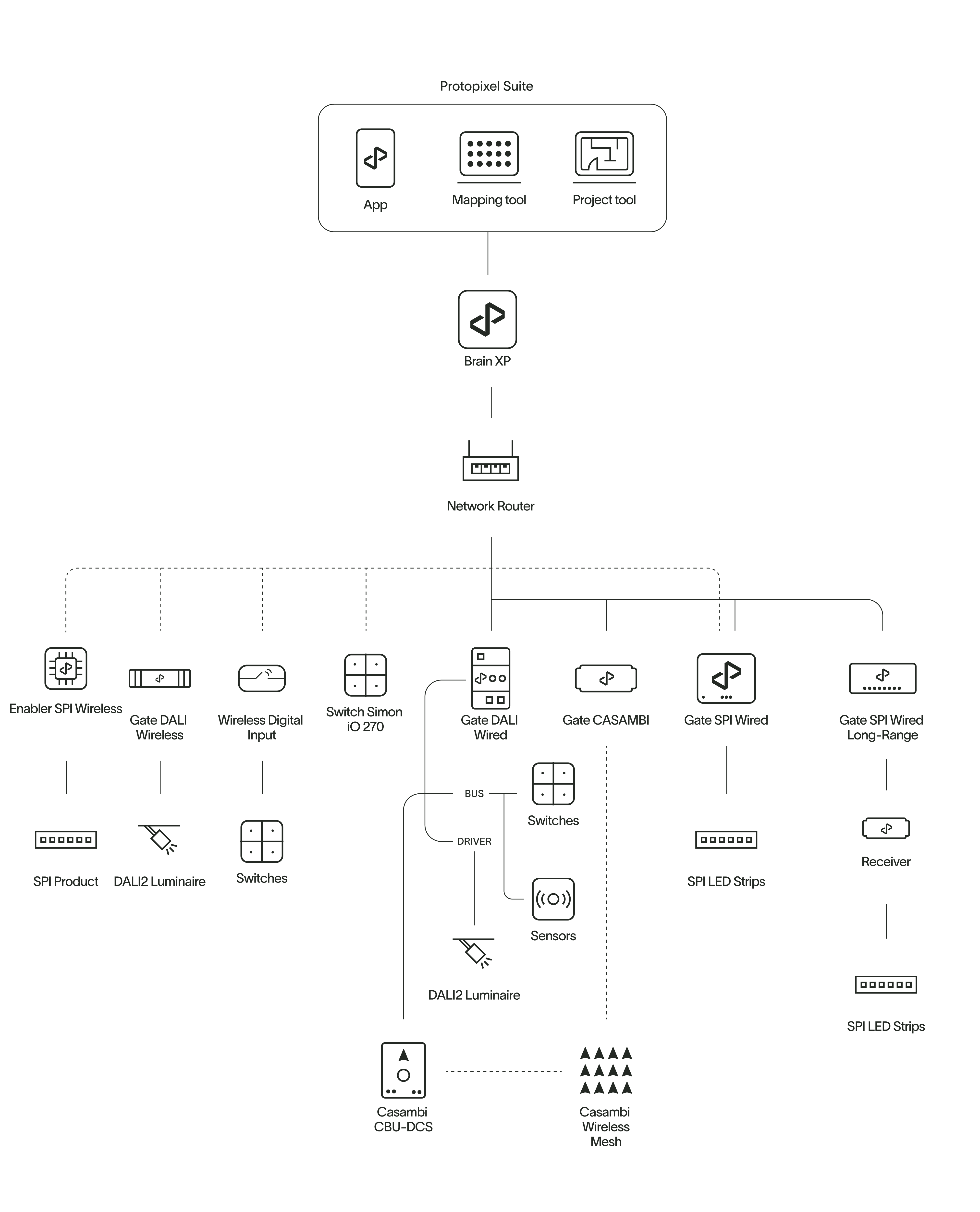 The residential lighting solution package, tailored for spaces like living rooms, lounges, and bedrooms, offers the full advantages of state-of-the-art digital lighting with minimal installation effort. This user- friendly system features wireless installation and control, enabling easy management of lighting types, dimming, color, and dynamic scenes to create comfortable, human-centric environments conducive to well-being.
