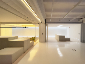 This is a solution for adaptive lighting in a working setting. It allows for the seamless integration of functional and emotional lighting to create high-value atmospheres, combining white light with pixel-to-pixel lighting.