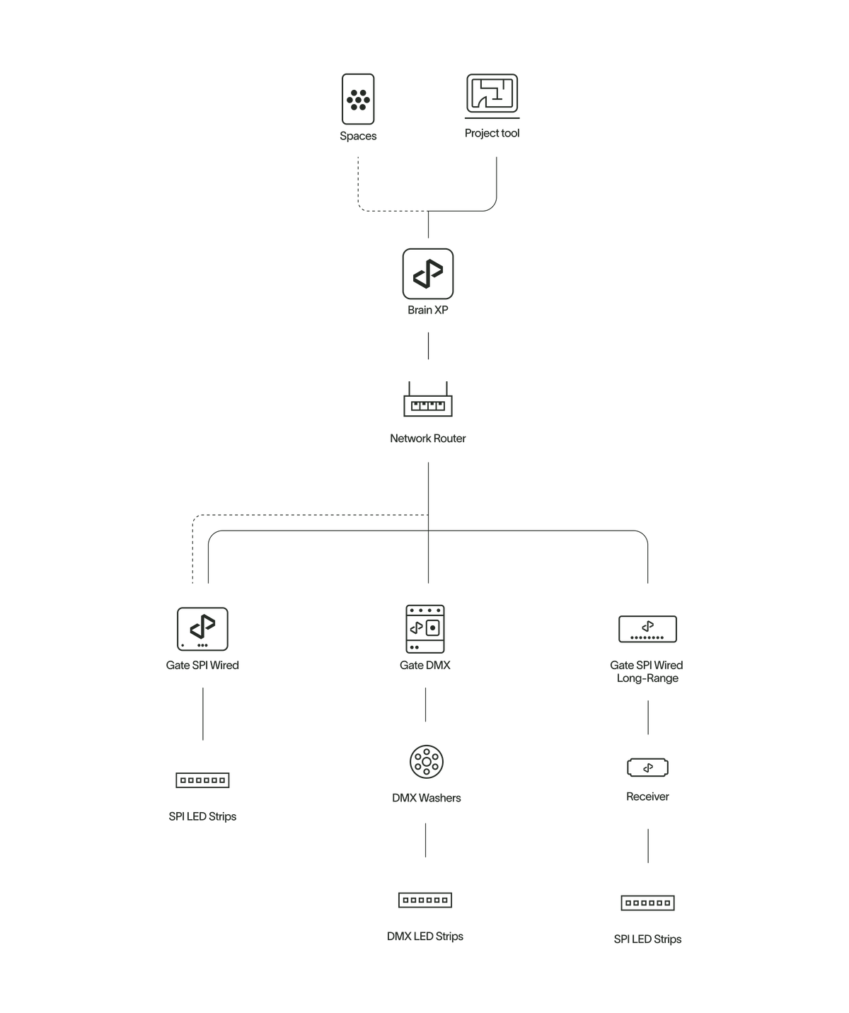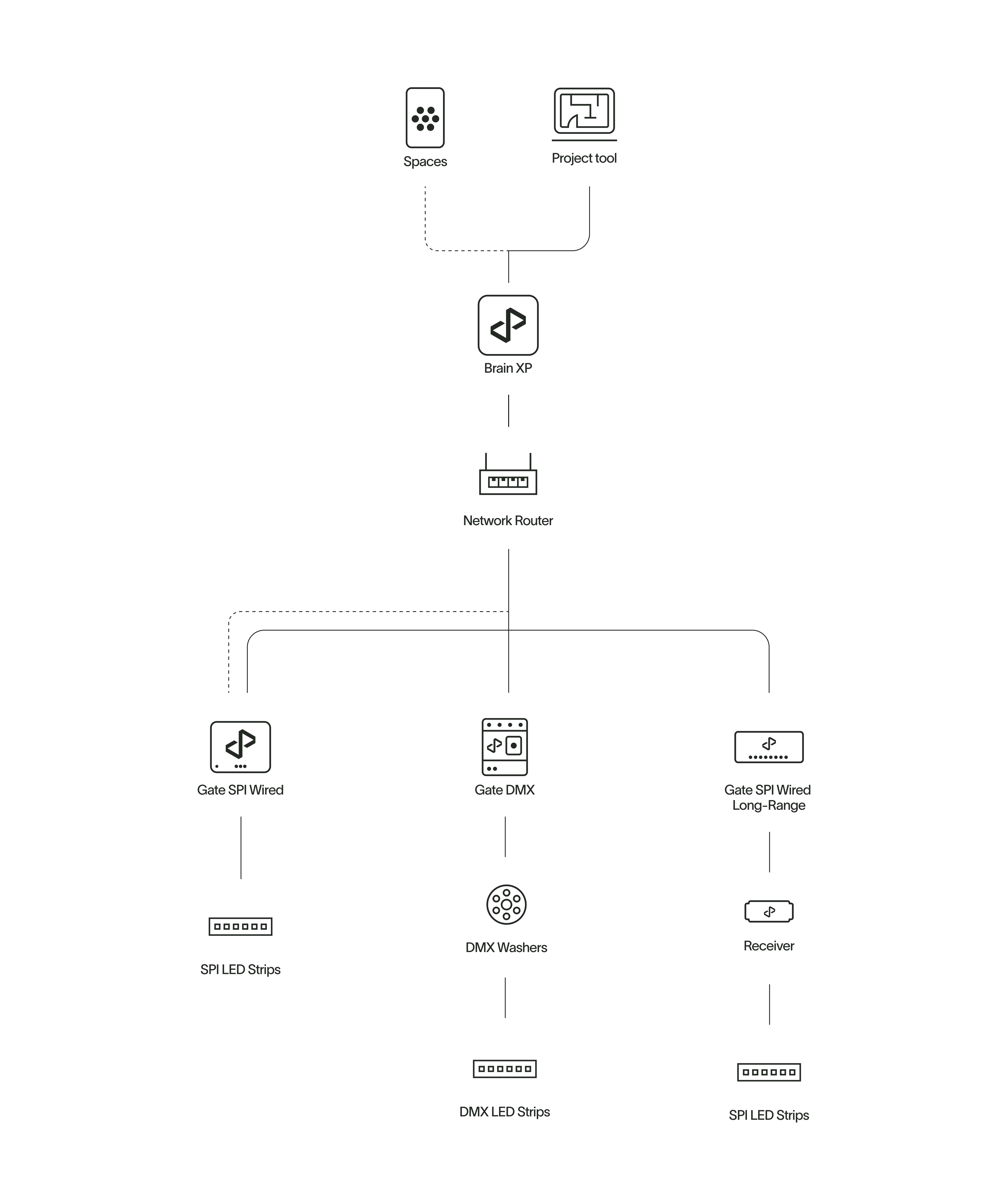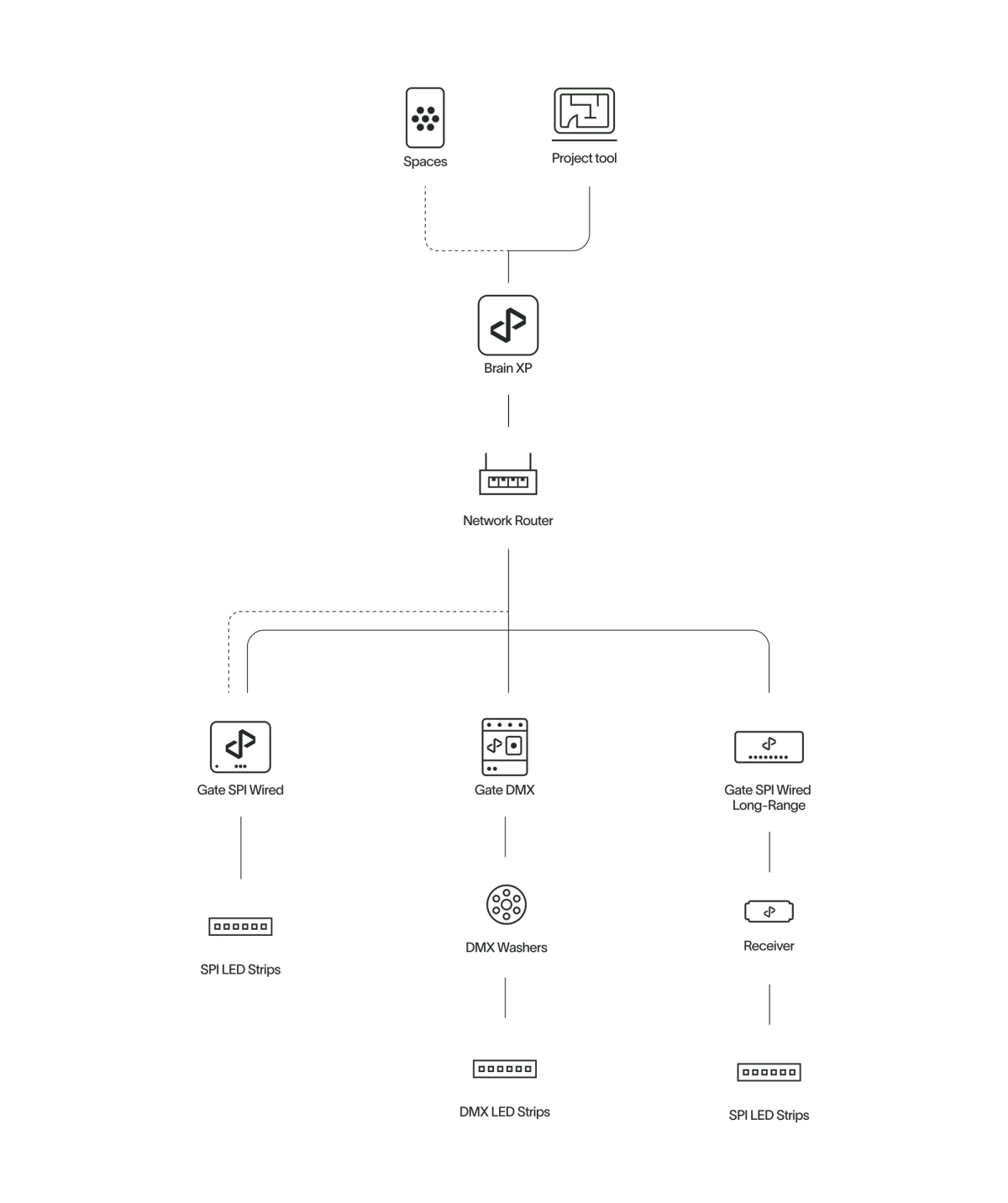 Design, implement and fine tune lighting projects and products by sending commands to Brains and Gates.